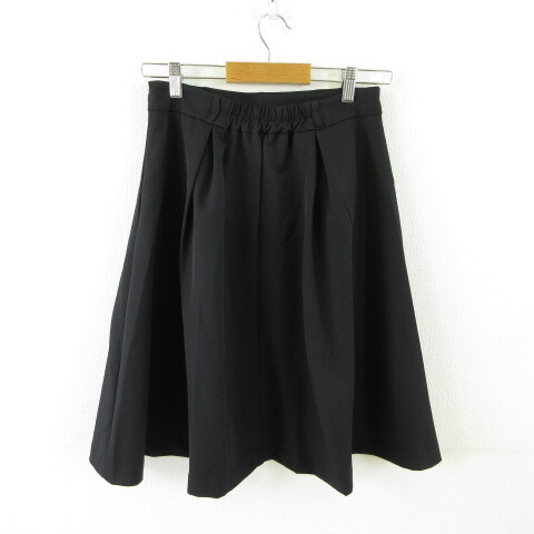 グラシア GLACIER スカート ひざ丈 フレア 黒 L *T601 レディース