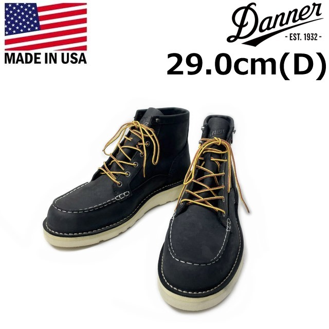 売切り【正規新品】DANNER◆BULL RUN MOC TOE ブーツ US購入 USA製 レザー ブルラン モックトゥ(Dワイズ/US11/29.0cm)黒 250709-B