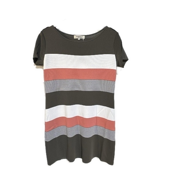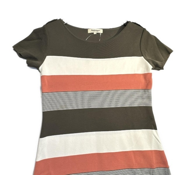 ポールスチュアート PaulStuart サイズ6 M - カーキ×白×マルチ レディース 半袖/ひざ丈/ボーダー ワンピース