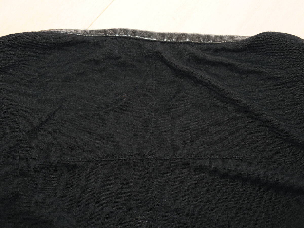 Uネックで襟、袖がレザートリムのされたデザインです。胸元にプリーツの入ったつくりです。