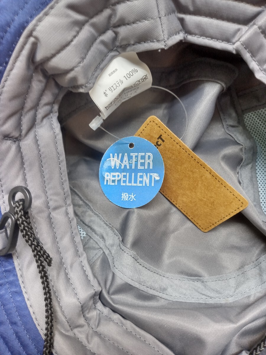 自身の左側に、ワンポイントの刺繍ロゴが入っています。顎ひもは取り外し可能です。