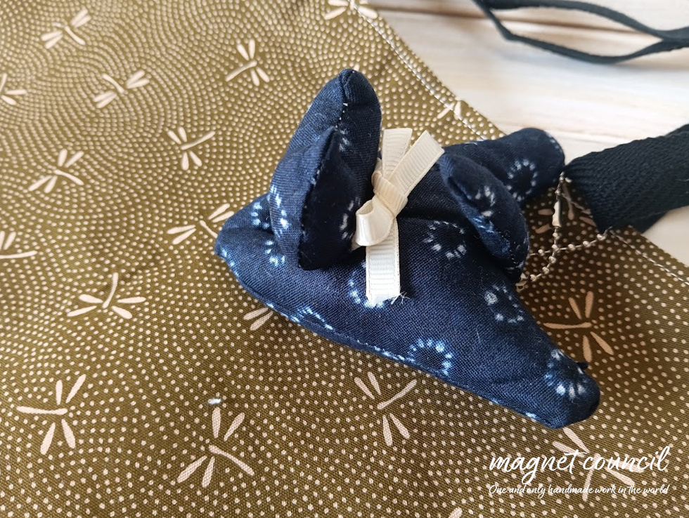 ::ハンドメイド::コットン手さげと洗たくバサミねこポールチェーン付き:A * 送料無料 * 1点物!::
