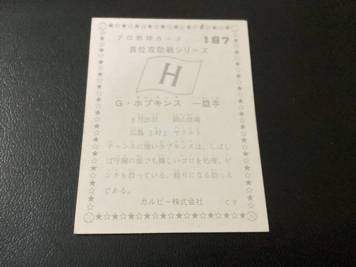 美品 カルビー75年 ホプキンス(広島)No.167 首位攻防戦シリーズ プロ野球カード