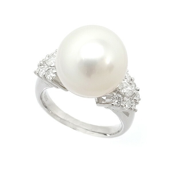 【緑屋質屋】特選ジュエリー パール・ダイヤ リング 12.5mm 0.63ct Pt900【中古】