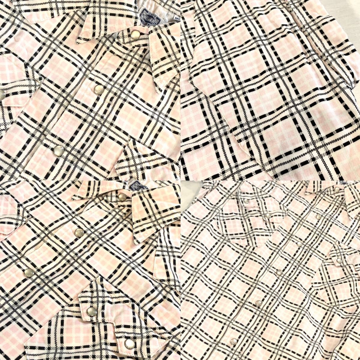 フェローズのブランド初期に展開されていたストーミーブルーから展開されたウエスタンシャツで、ライトピンク、ホワイト、ブラックカラーでチェックパターンがデザインされた明るいカラーリングの綺麗なデザインになっています。