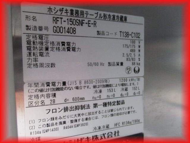 | ●冷凍冷蔵庫 業務用 台下 テーブル形 2ドア 1室冷凍 ホシザキ RFT-150SNF-E-R 100V 1500×600mm 送料無料 305L● | ||||||||||||||