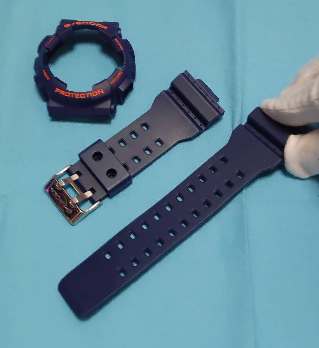 【未使用】G-SHOCK GA-100 GA-110 GA-120 GD-100 GD-110 GD-120 ベゼル ベルト セット 紺色 ネイビー 橙 オレンジ文字 ジーショック 日