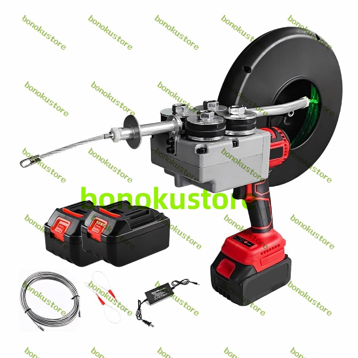 ?自動配線機 電動ケーブルプッシャー 配線工事に最適な強力ツール製品の特徴高効率作業:最大引張力 0 - 550Nm、機械ライン速度 40M/min で、配線工事、建物の装飾、ネットワーク通信などのシナリオに対応。90° エルボを 6 つ簡単に通過可能で、複雑な配管環境もスムーズに対応。使いやすさ:360° ワイヤーエルボ、誘導スイッチ、補助ハンドルがあり、操作性が優れている。無段階変速スイッチで、ワンタッチ操作で糸通し / 糸引きが可能。高品質素材:アルミ合金ボックス、リード線保護カバー、滑り止めハンドルを採用。3 次元強力放熱設計で、長時間使用でも過熱せず、耐久性が高い。純銅製の産業グレード誘導モーターで、安定性と効率性に優れ、長寿命の電力供給を実現。製品内容自動配線機本体 ×1リチウムイオン電池 ×1(または ×2、仕様による)ワイヤー ×1補助ツールセット×1充電器 ×1配線工事の効率を大幅に向上させる強力ツールで、高品質と使いやすさを兼ね備えています。プロの工事現場から DIY 愛好者まで、幅広くお使いいただけます。