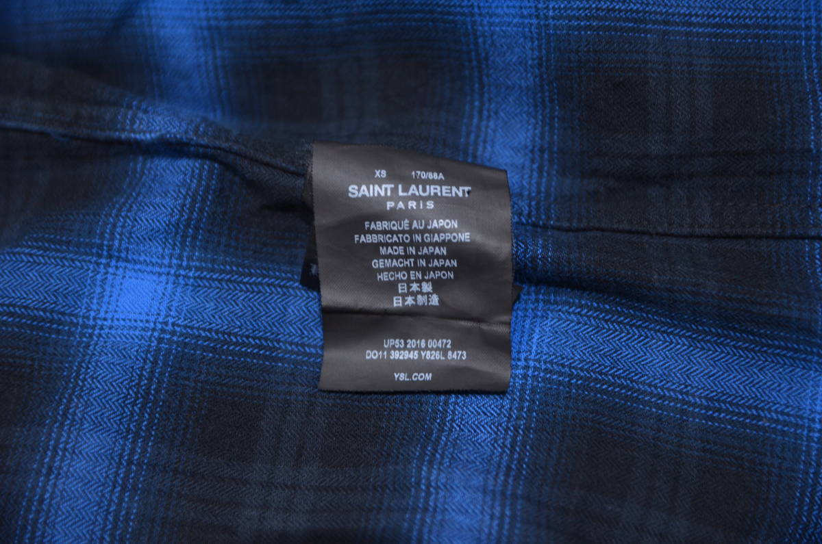 国内正規 SAINT LAURENT PARIS サンローランパリ オンブレチェック 長袖 シャツ トップス ブルー × ブラック XS Y-307165