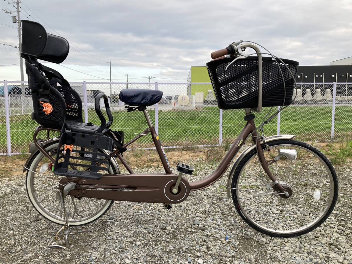 20インチ自転車 ママチャリ MAMA TO ISSHO ブラウン系 後ろ乗せチャイルドシート付 大型前かご 前乗せチャイルドシートに変更すれば3人乗りにも |