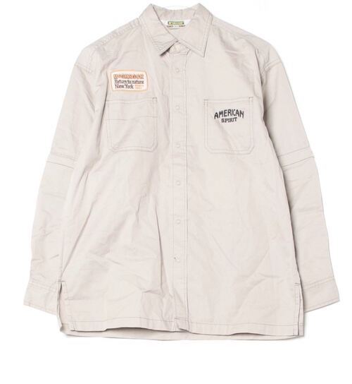McGREGOR マクレガー 長袖 ベージュ 肌色 シャツ 綿 コットン M 綿 サイズ マックレガー 半袖 古着 切り替え ワッペン