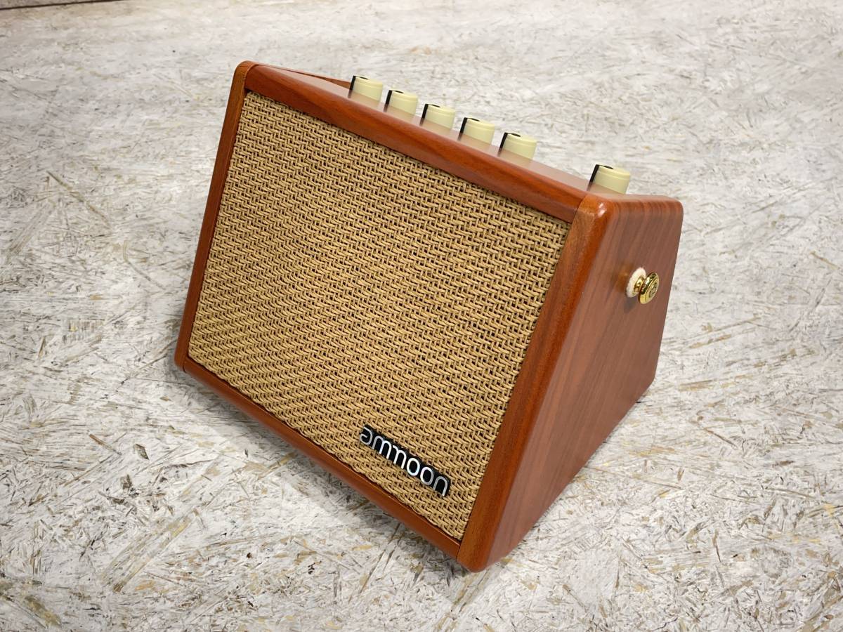 バッテリーを内蔵したアコースティックギター用アンプです。ギターとマイクを接続可能。Bluetooth機能も搭載しています。