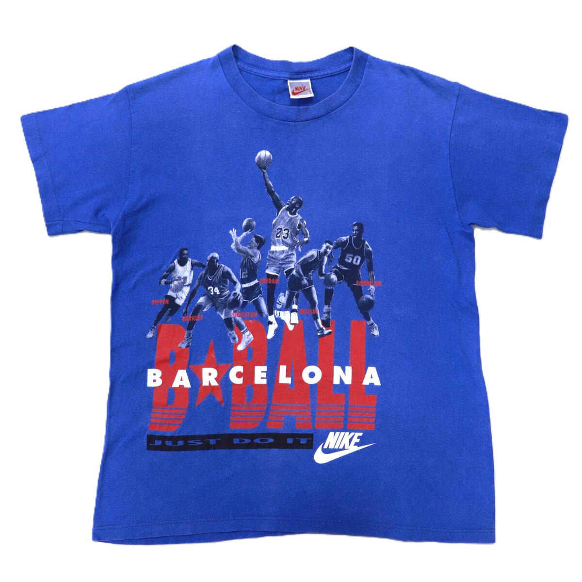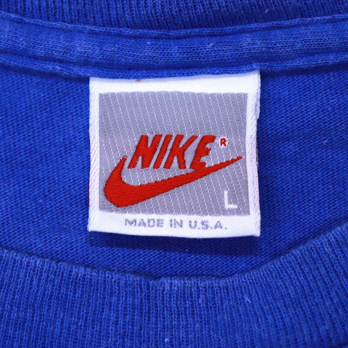 NIKE_ナイキ◆90s/銀タグ/Tシャツ/L/コットン/BLU/USA製