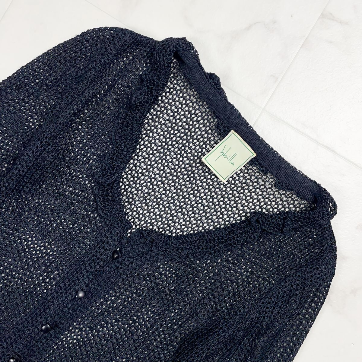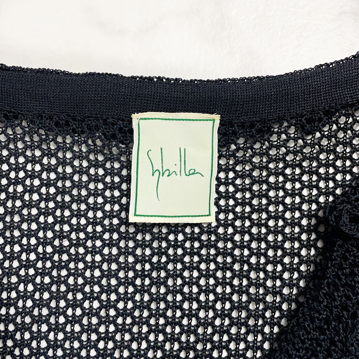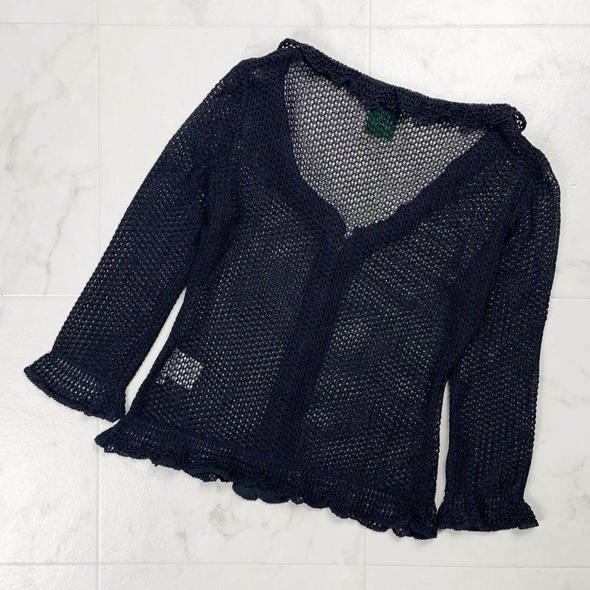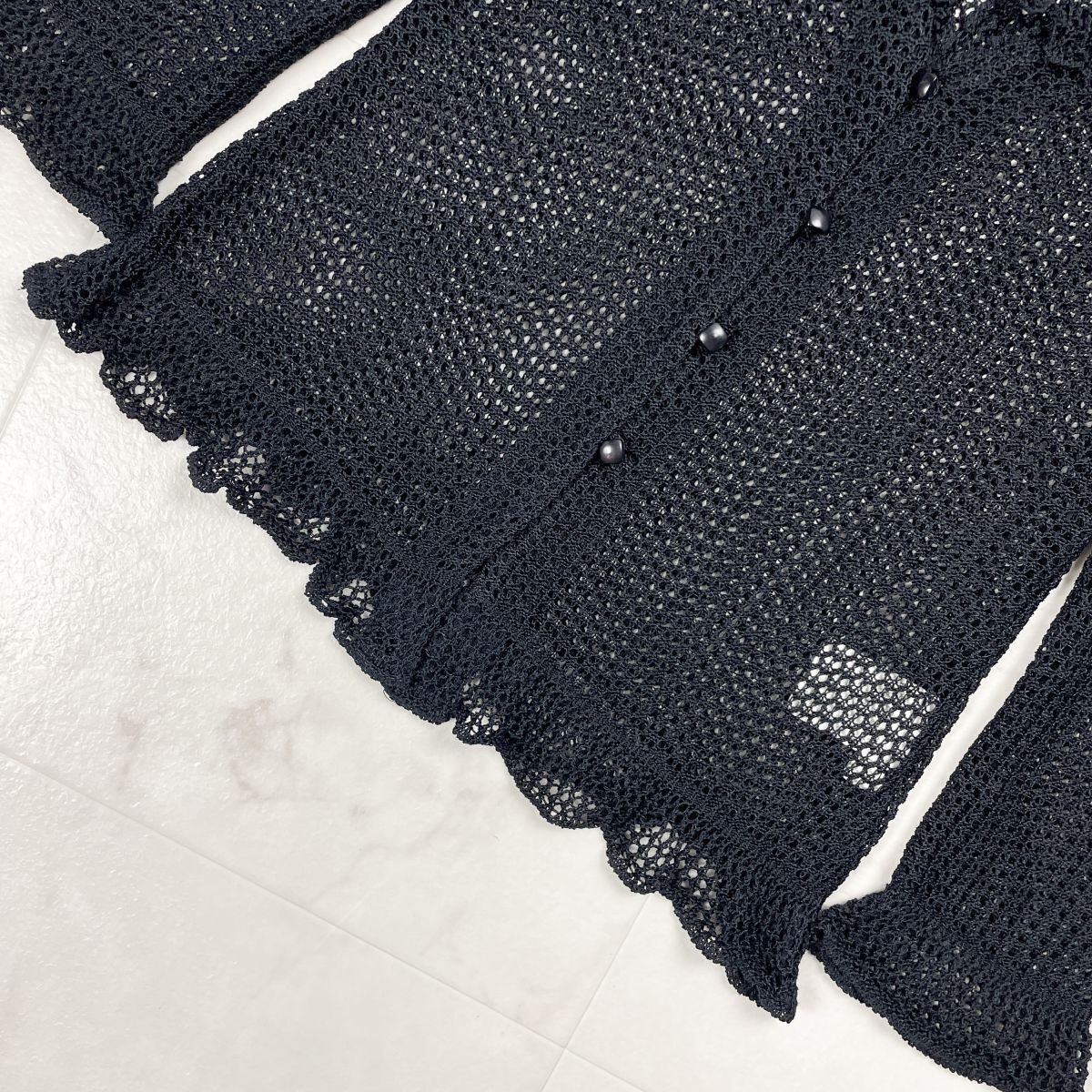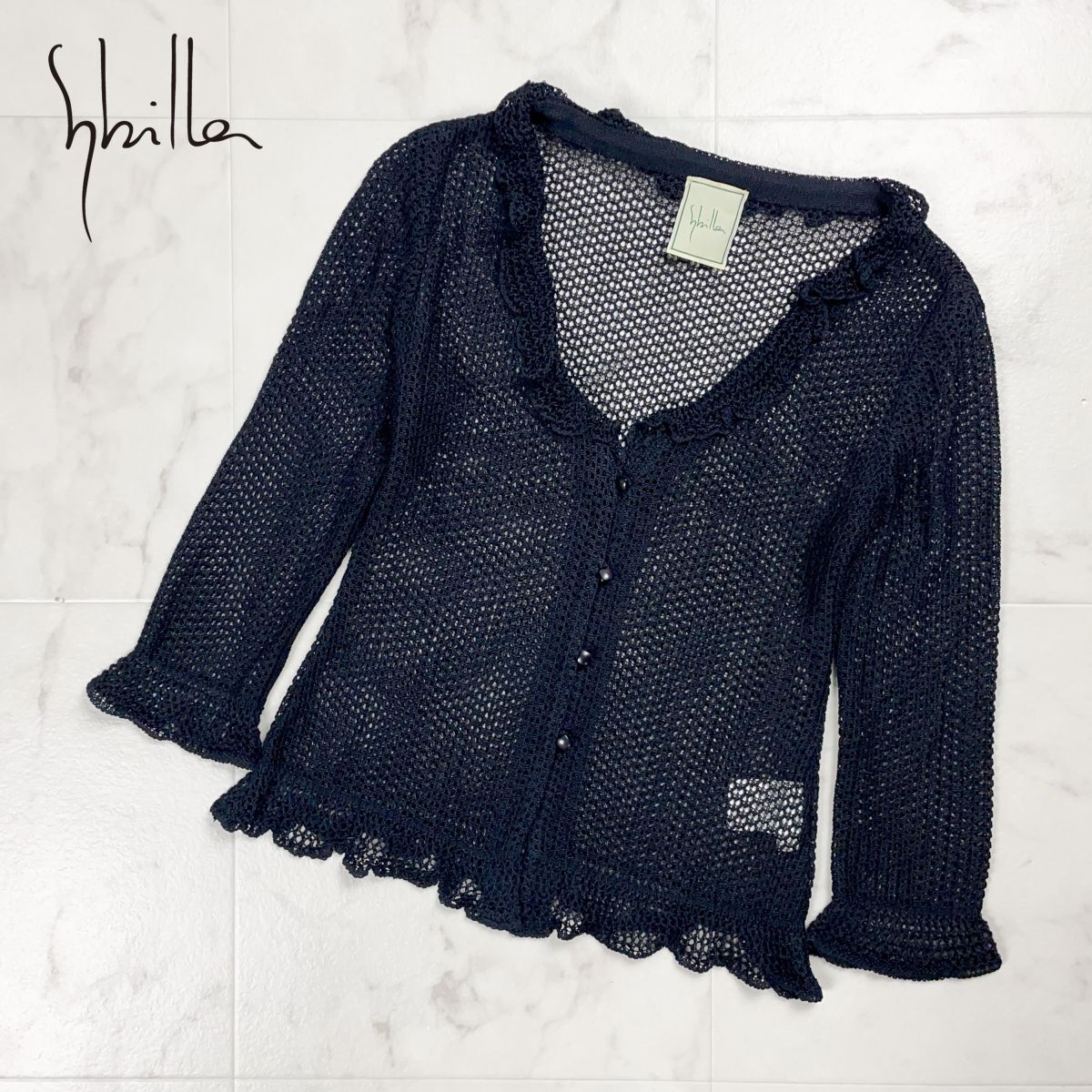 美品 Sybilla シビラ フリルメッシュカーディガン トップス 七分袖 レディース ブラック 黒 サイズM*ED1131