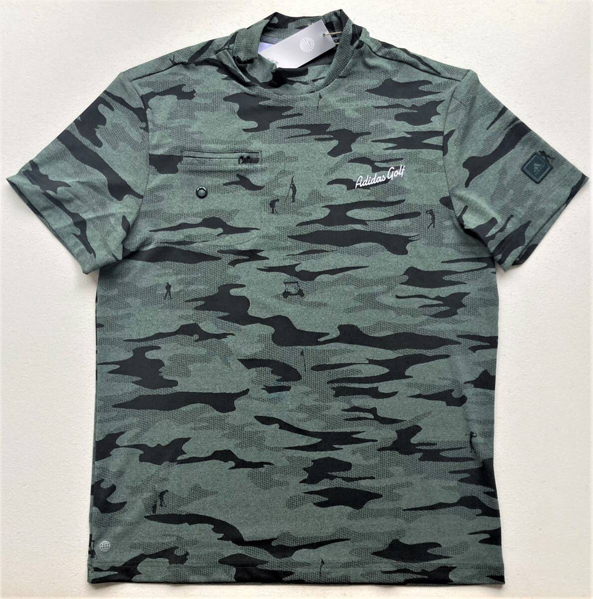 左胸にAdidas Golfの刺繍、右胸にポケット、ストレッチ素材で着心地抜群です