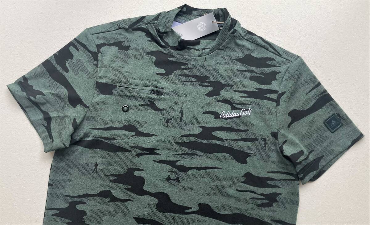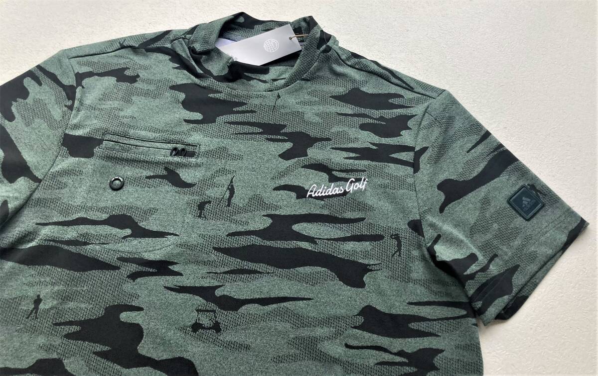 ◆adidas◆アディダス◆半袖モックシャツ③◆L◆カモフラージュ柄◆グリーン×ブラック