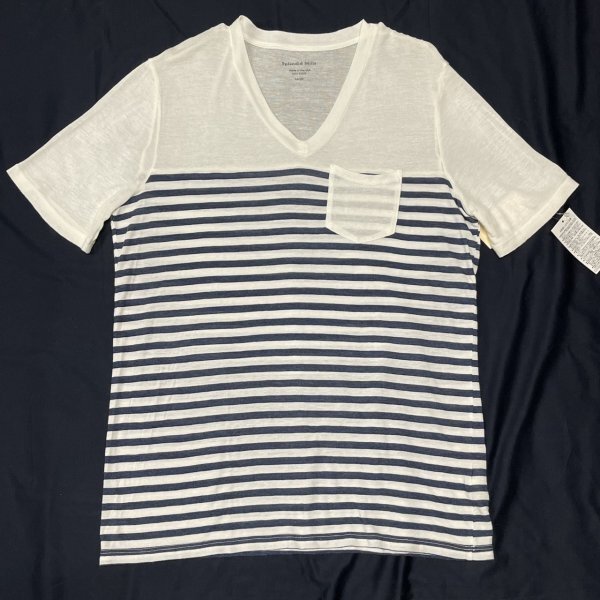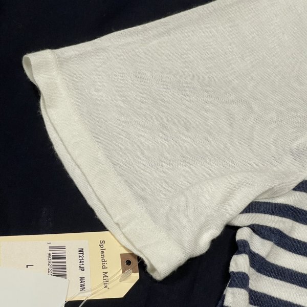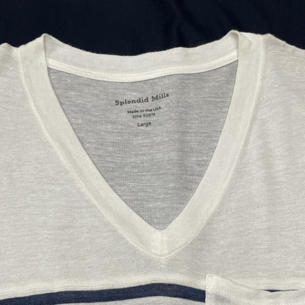 新品 Splendid Mills Vネック ボーダーTシャツ 3者混   スプレンディッド ミルズ レーヨン 麻 ポリエステル USA製 ポケットT YL2402 サラッとした上質素材 セレカジ MADE IN USA アメリカ製 ショートスリーブ 半袖Tシャツ