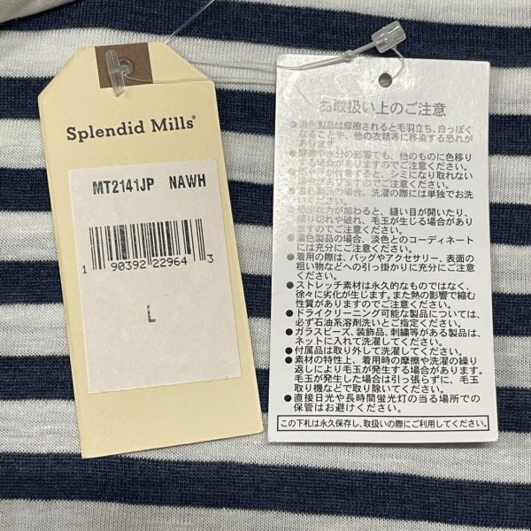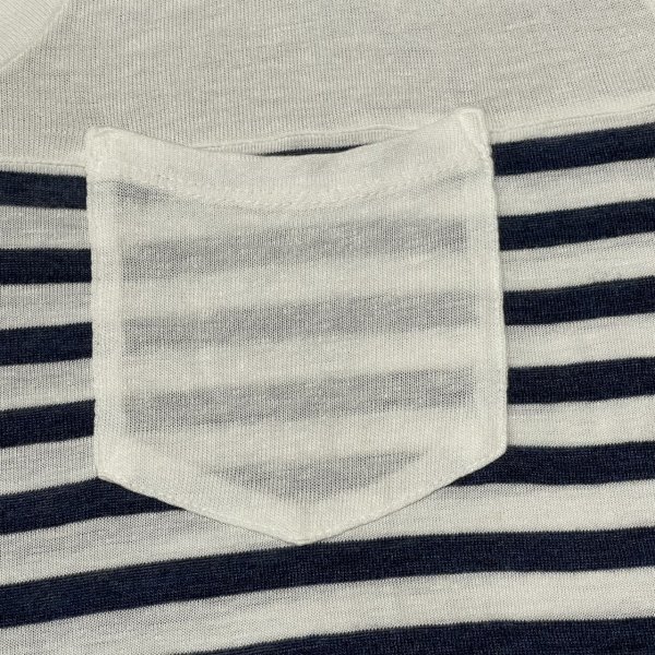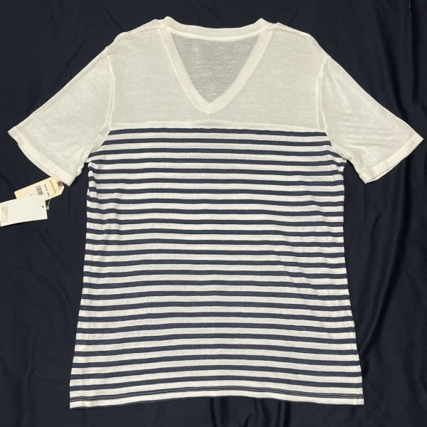 新品 Splendid Mills Vネック ボーダーTシャツ 3者混   スプレンディッド ミルズ レーヨン 麻 ポリエステル USA製 ポケットT YL2402