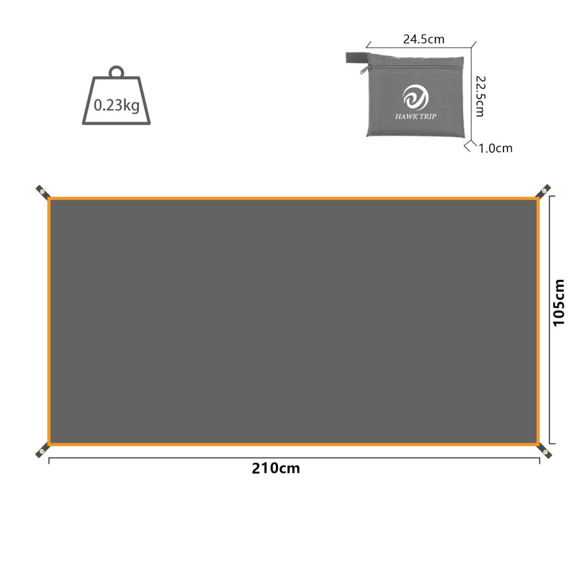テントシート グランドシート 防水シート 軽量 収納バッグ付き アウトドア キャンプ 登山 ピクニックハイキング (グレー, 105x210cm)