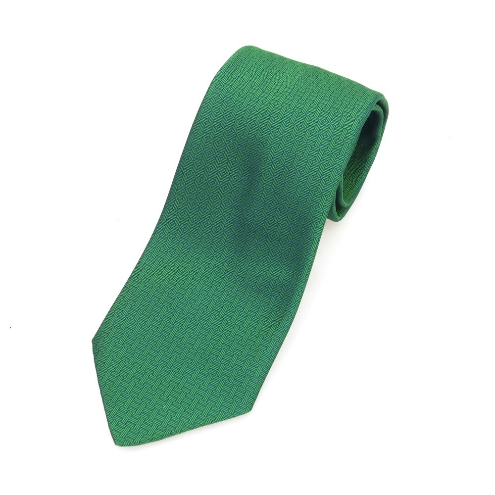 【中古】エルメス HERMES シルク ジャカード ネクタイ グリーン