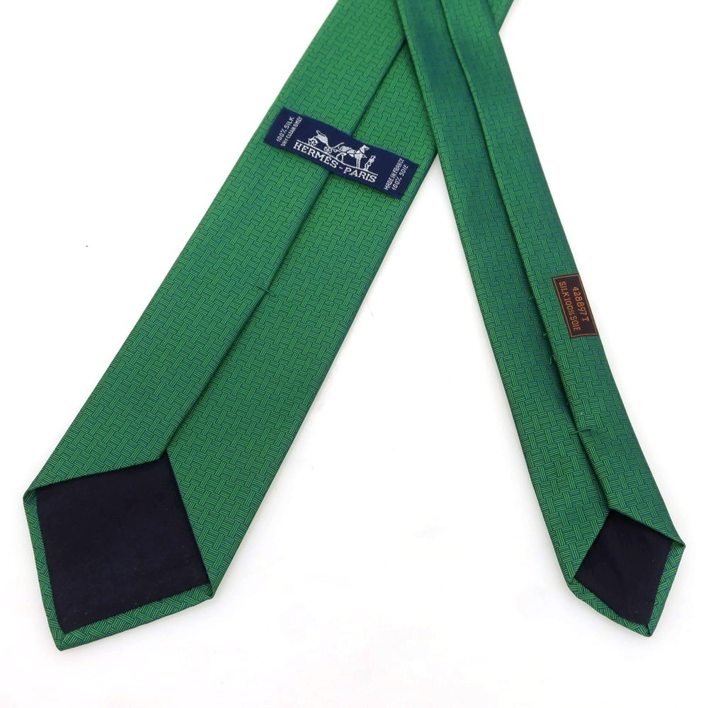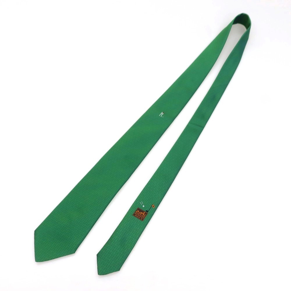 【中古】エルメス HERMES シルク 無地ネクタイ【GRN】【749286】