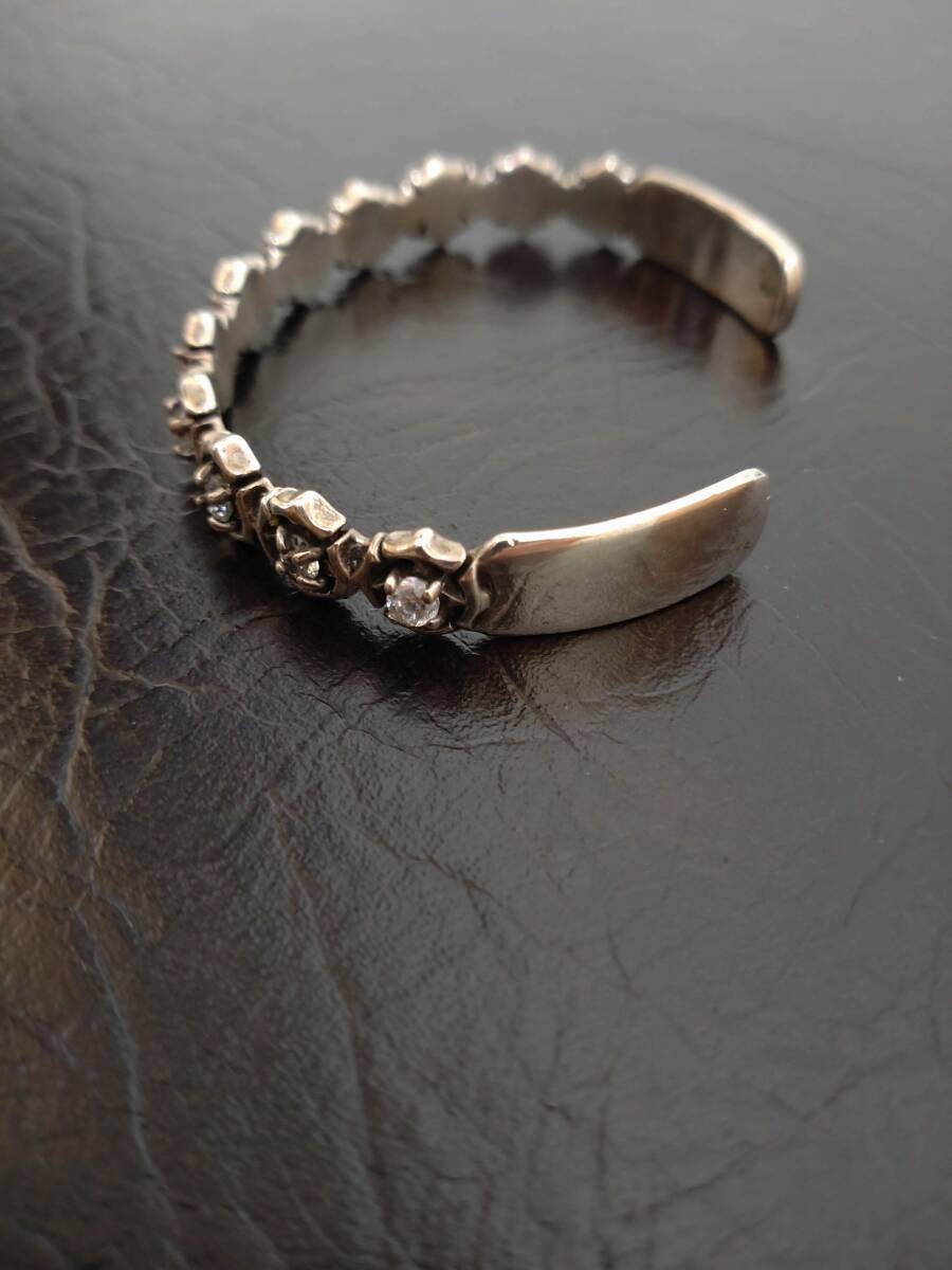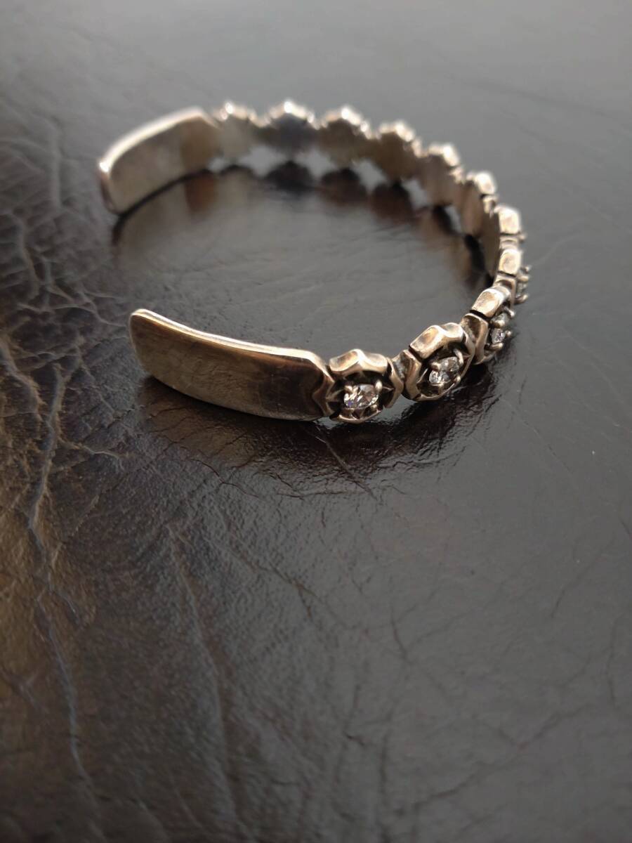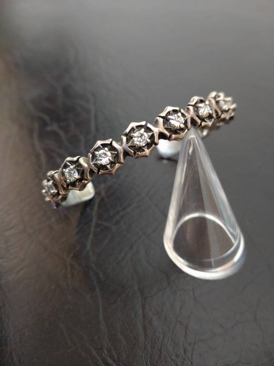 フローラルモチーフが連続してデザインされたシルバー925バングルです。