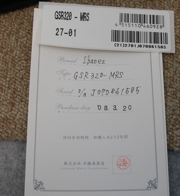 ☆【Ibanez / アイバニーズ エレキベース GSR320-MRS】星野楽器 ソフトケース付 N10166