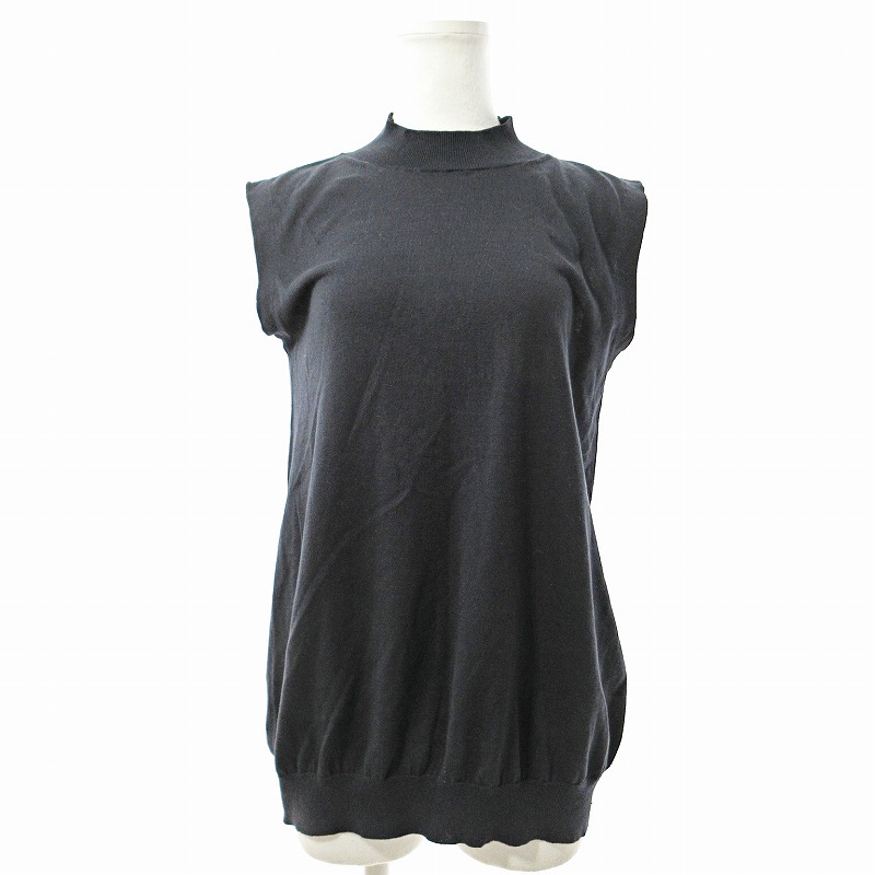 エンフォルド ENFOLD 美品 19SS シルクノースリーブニット カットソー 38 紺 ネイビー 3009S170-1450 0707 IBO73 レディース
