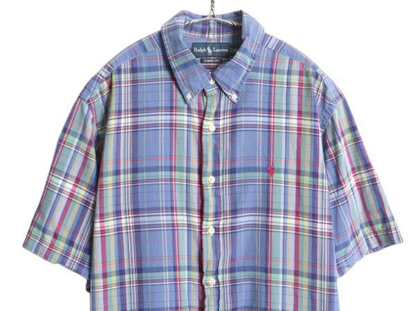| 商品名 | 00s ラルフローレン チェック 半袖 ボタンダウン シャツ メンズ XL ポロ BD 半袖シャツ 薄手 コットン きれいめ マルチカラー 大きいサイズ |