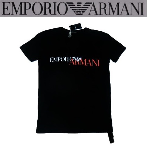 ★新品! EMPORIO ARMANI リッチでお洒落!存在感抜群☆110810 都会派オトナの今ドキ!!格上げ☆ミセる♪お目立ちEAロゴTシャツ<XL> 黒