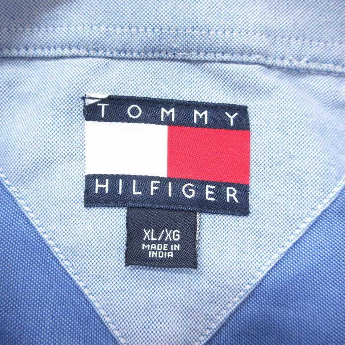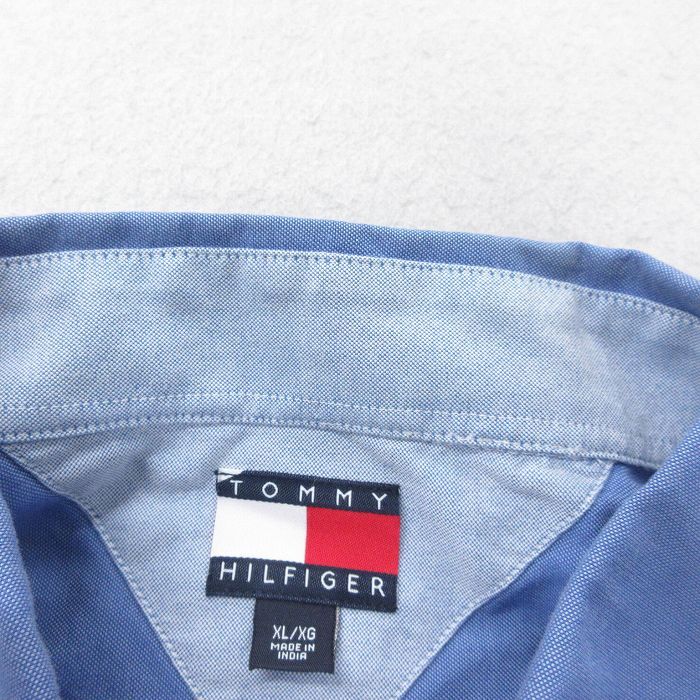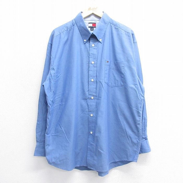 【商品名】 XL★古着 トミーヒルフィガー 長袖 ブランド シャツ メンズ 90年代 90s ワンポイントロゴ 大きいサイズ コットン ボタンダウン 薄紺