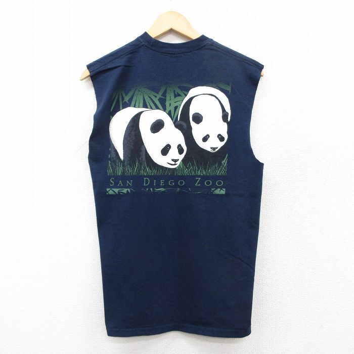 【商品名】 M★古着 ノースリーブ ビンテージ Tシャツ メンズ 00年代 00s パンダ コットン クルーネック 紺