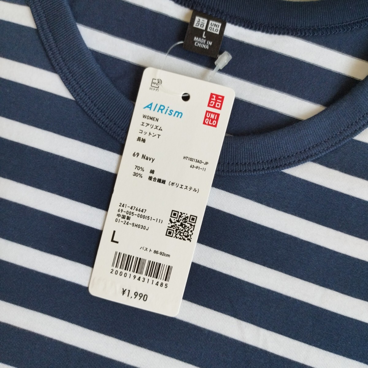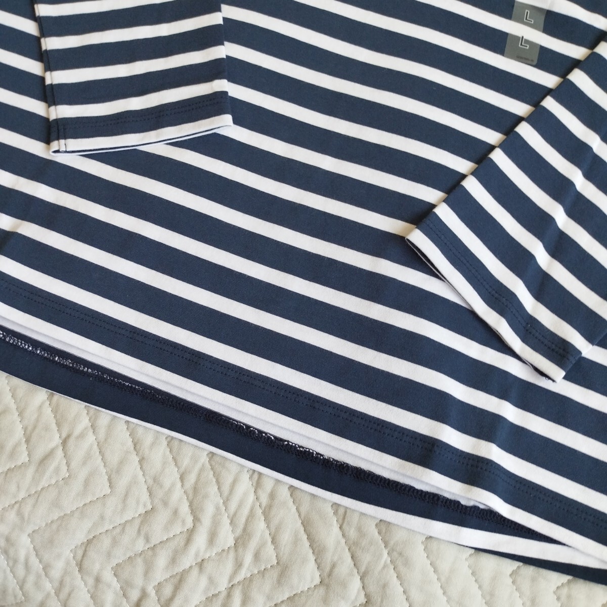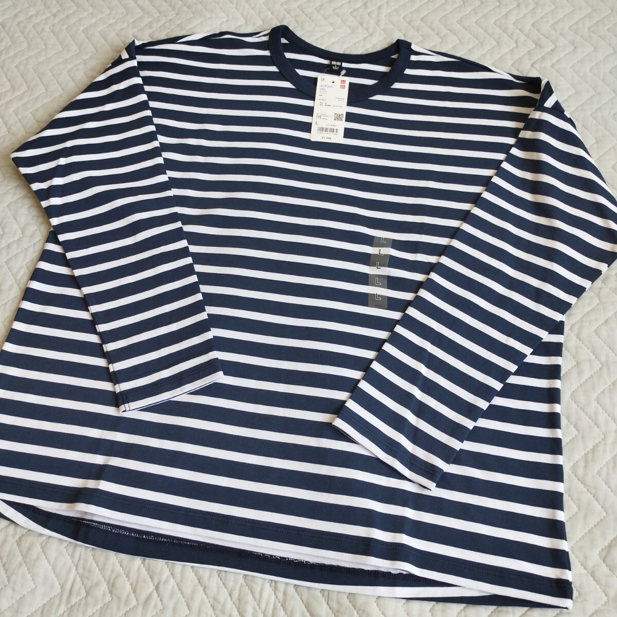 未使用 ユニクロ エアリズムコットンT 長袖 レディース L ネイビー ボーダー エアリズム Tシャツ エアリズムコットン 匿名 送料無料