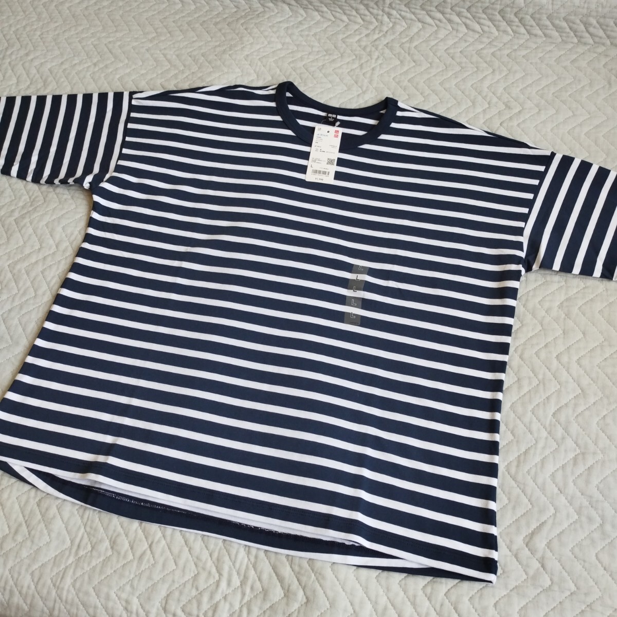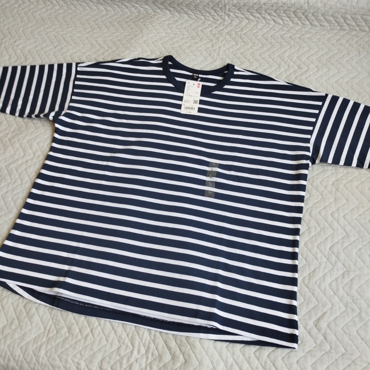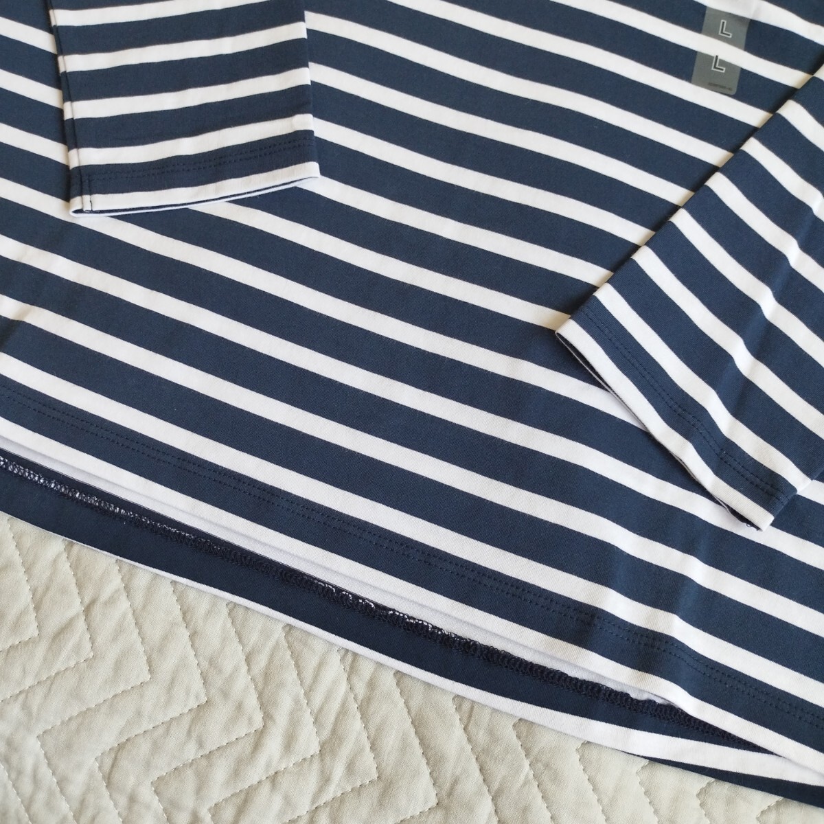 未使用 ユニクロ エアリズムコットンT 長袖 レディース L ネイビー ボーダー エアリズム Tシャツ エアリズムコットン 匿名 送料無料