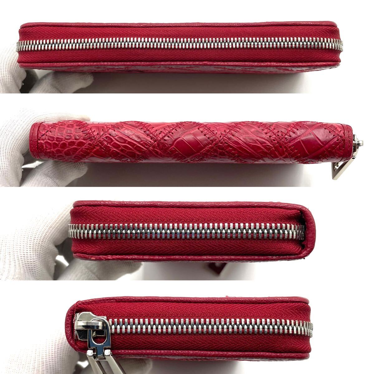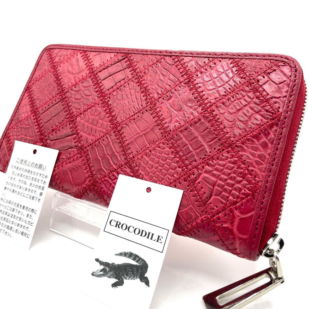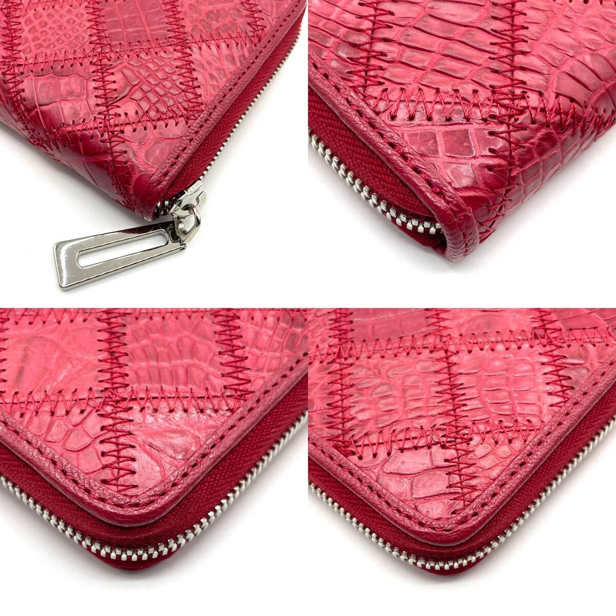 CROCODILE 美品 クロコダイル パッチワーク 長財布 ラウンドファスナー クロコ エキゾチックレザー ワニ革 鰐 レッド 赤 レディース 1973