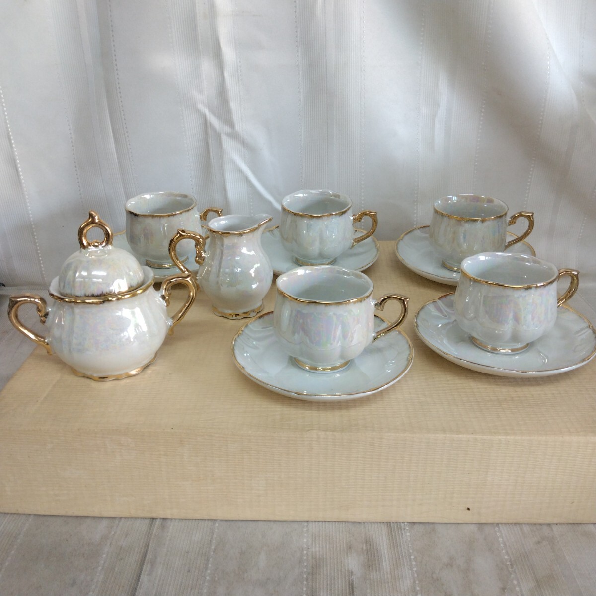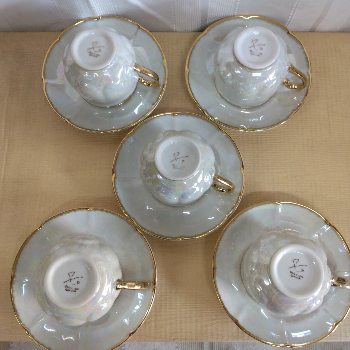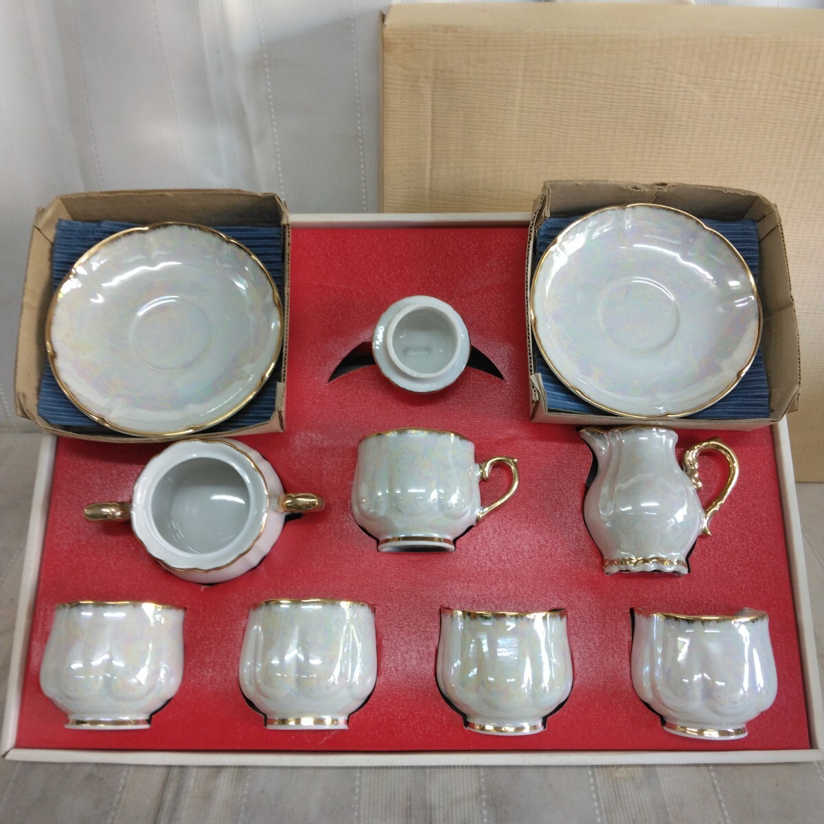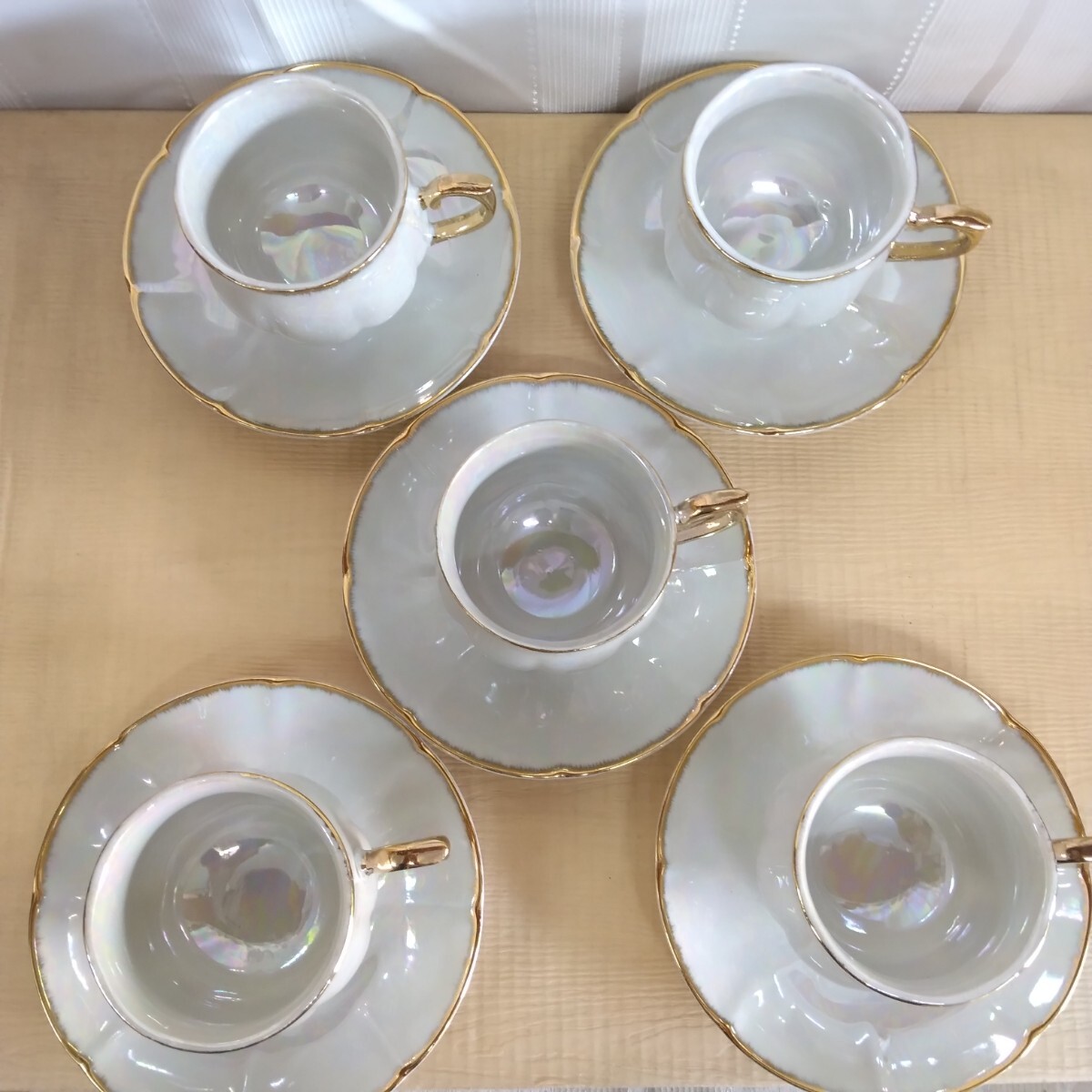 美品【 第一陶器株式会社 】 オーロラ コーヒーカップ ソーサー 5客 ミルク入れ シュガーポット セット 洋食器 金縁 レトロ エレガント