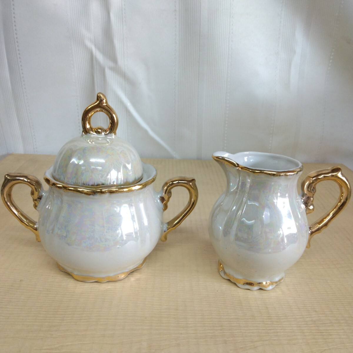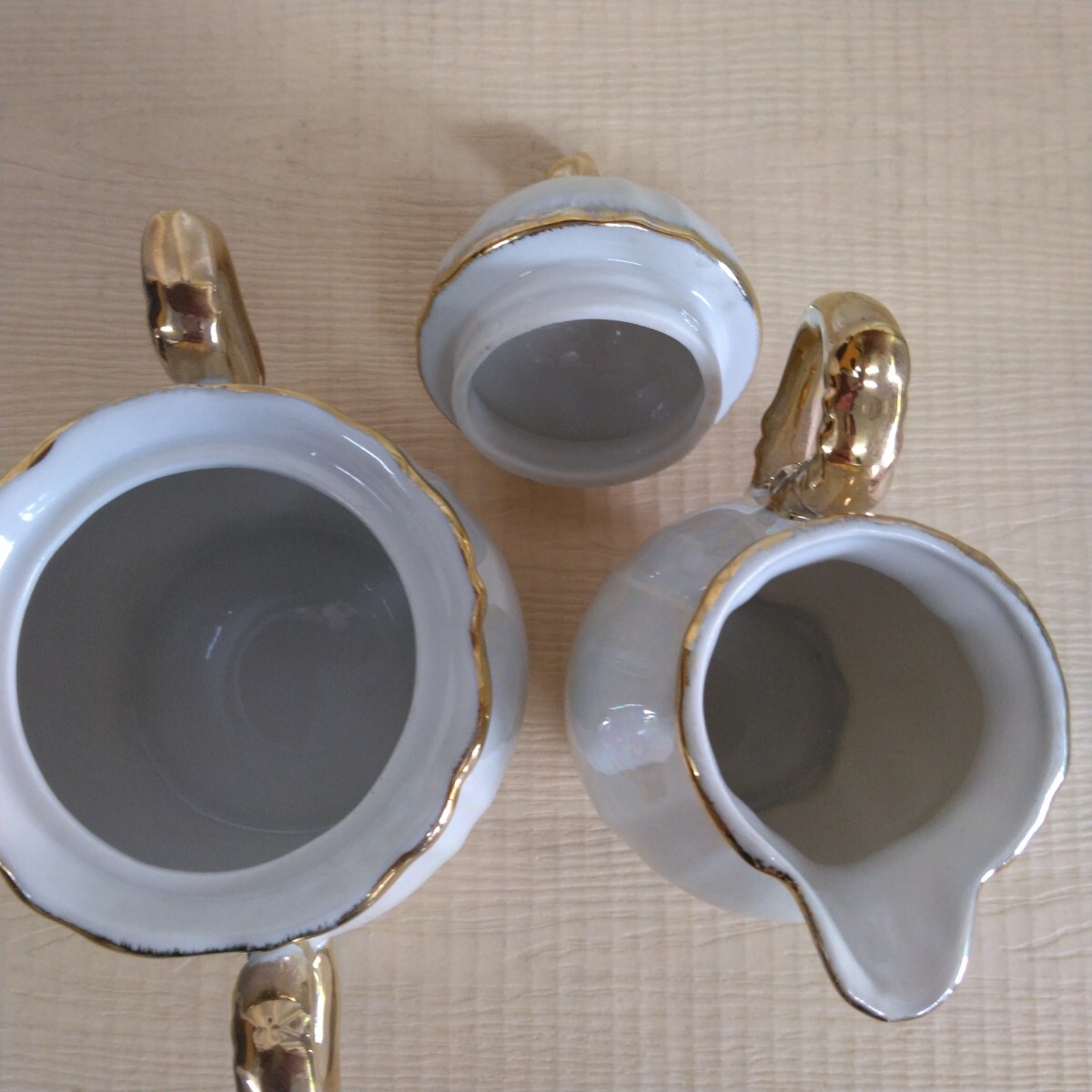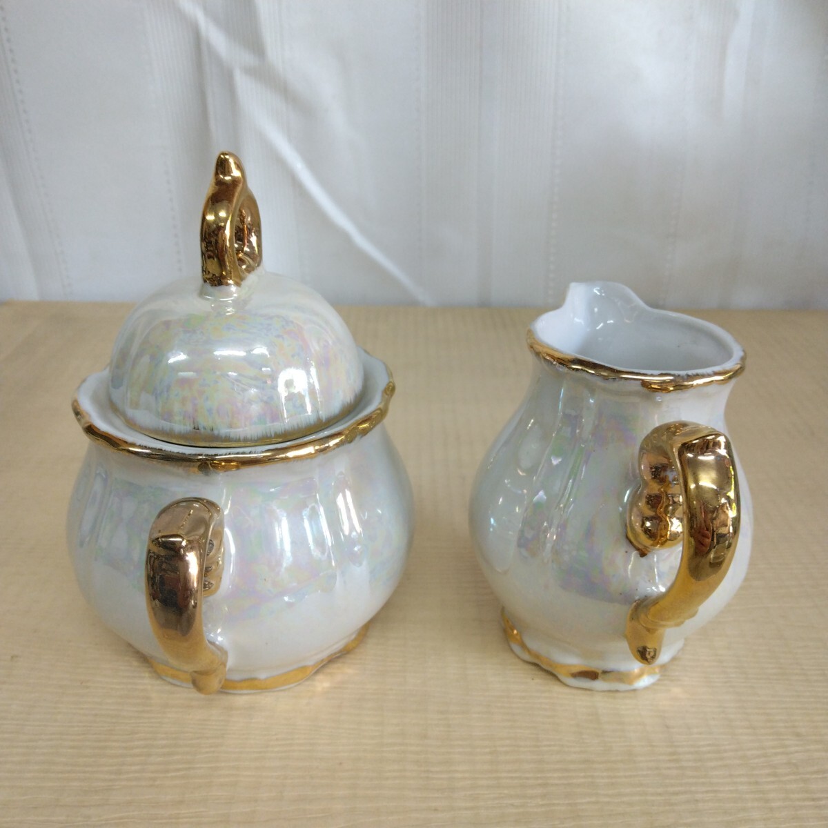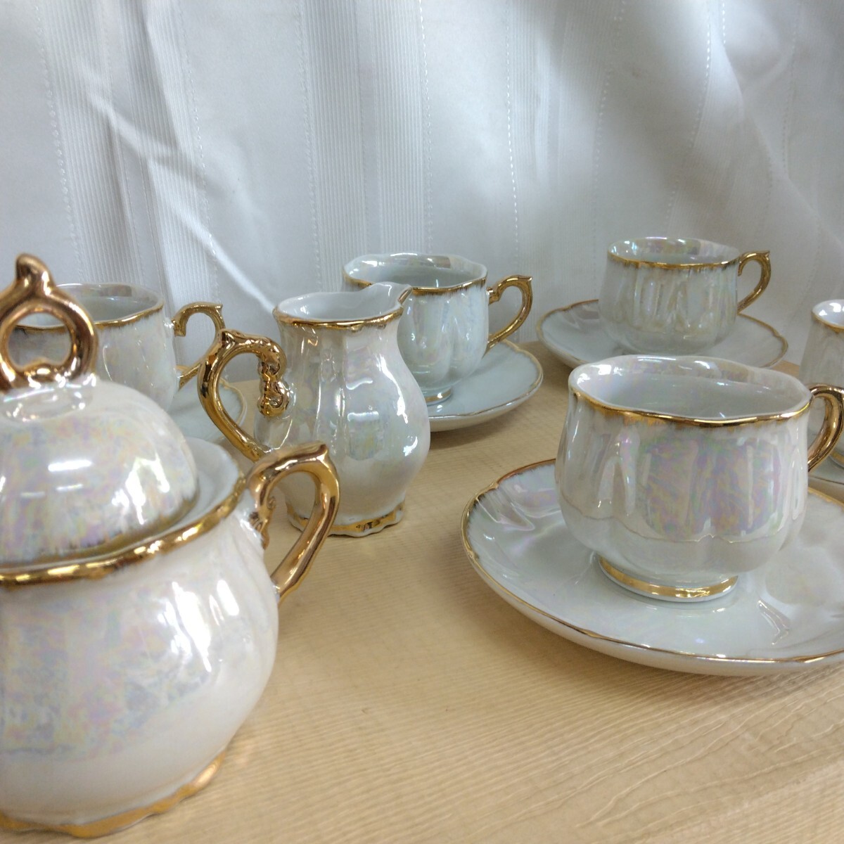 美品【 第一陶器株式会社 】 オーロラ コーヒーカップ ソーサー 5客 ミルク入れ シュガーポット セット 洋食器 金縁 レトロ エレガント
