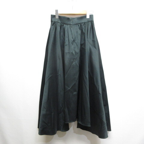 ブレンへイム BLENHEIM イレギュラーヘム フレア スカート S 深緑 ダークグリーン 微サテン 日本製 レディース