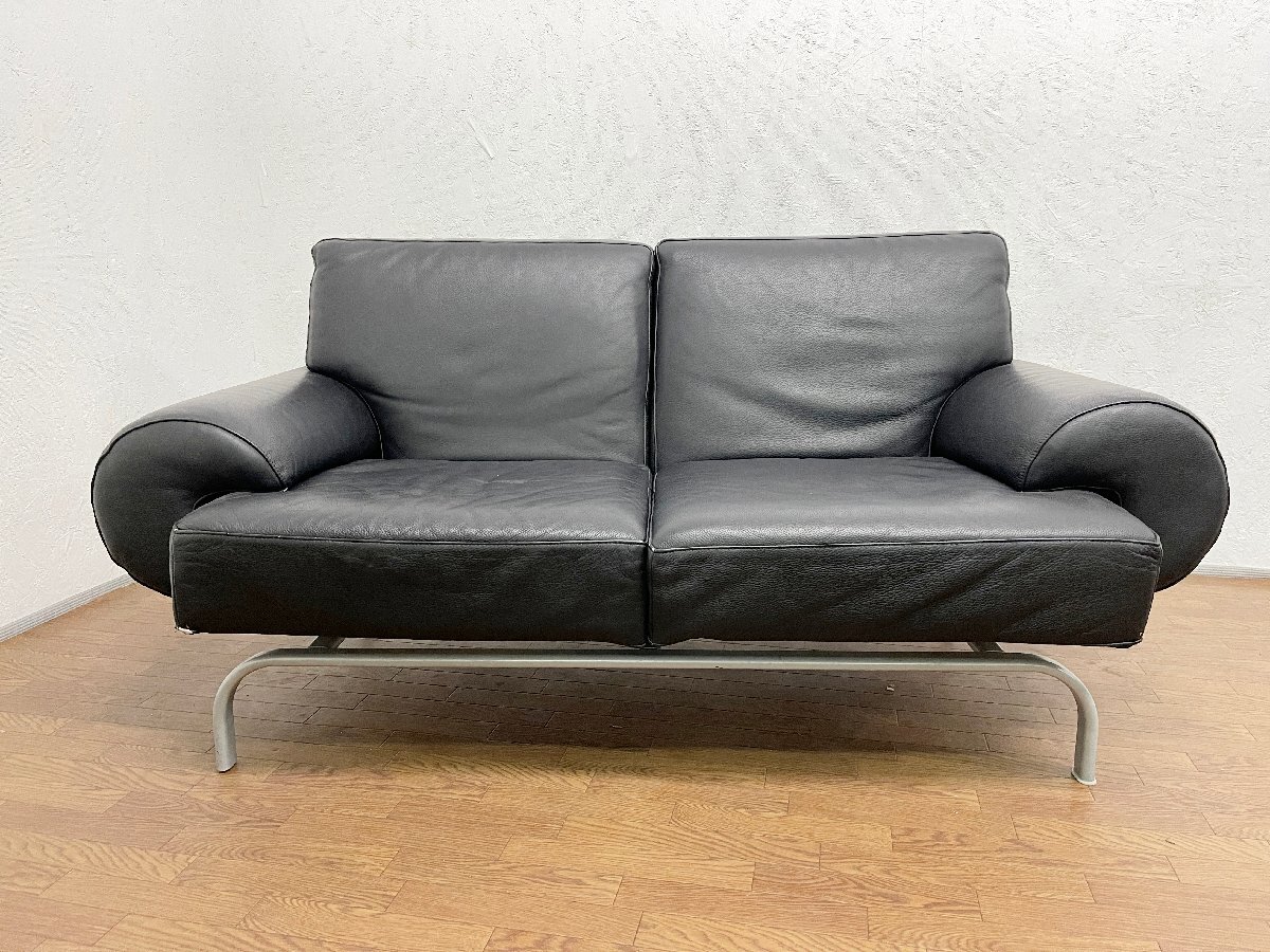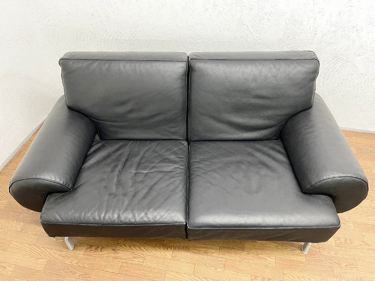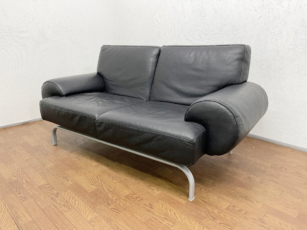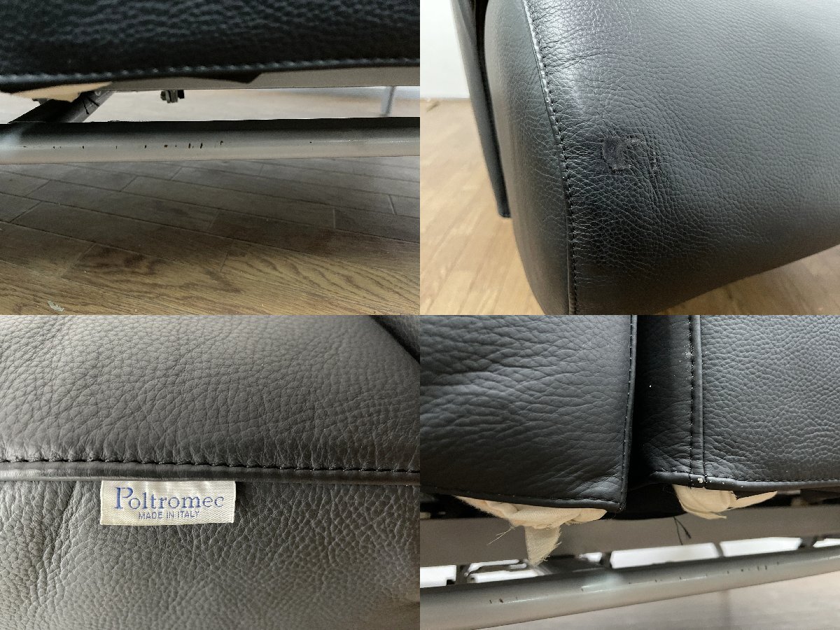 ◆ポルトロメック Poltromec 本革 イタリア製 2人掛けソファ 2P ラブソファ ブラック モダン 家具 腰掛 インテリア (貝1116)