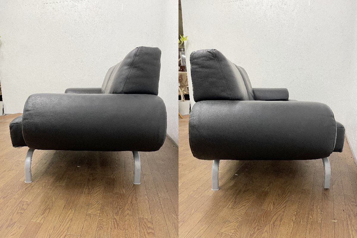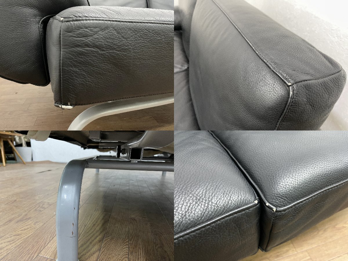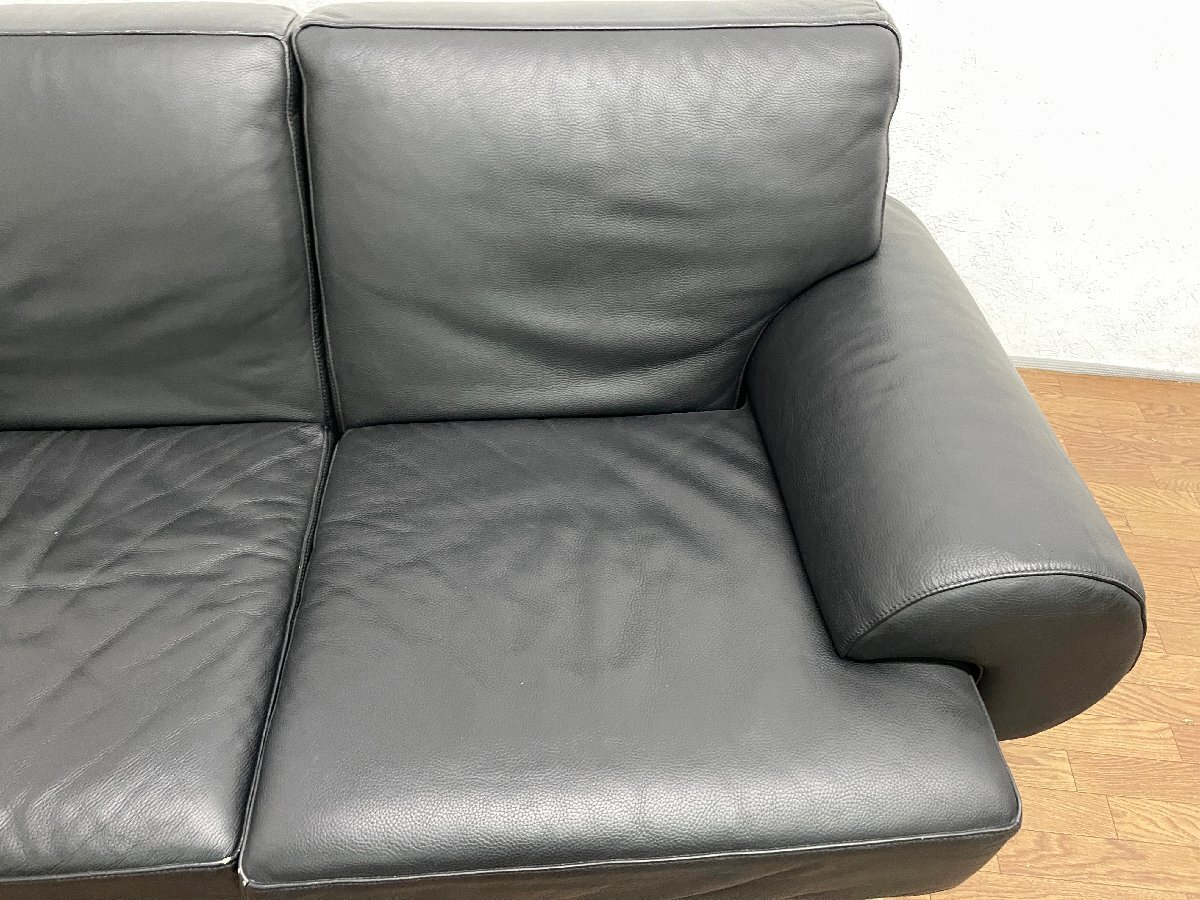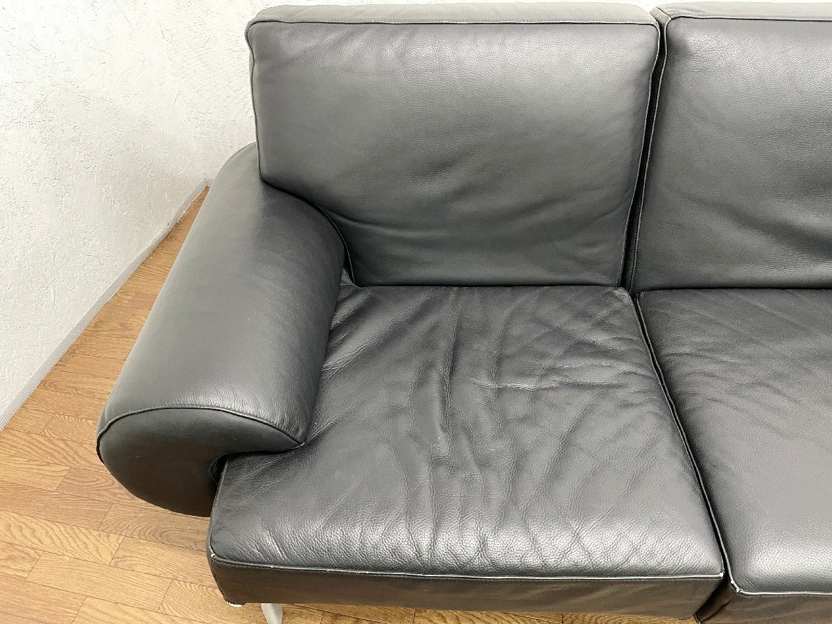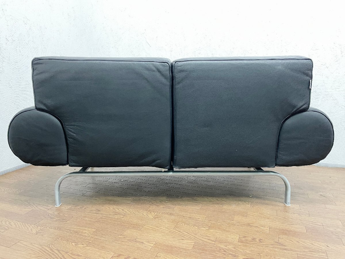 ◆ポルトロメック Poltromec 本革 イタリア製 2人掛けソファ 2P ラブソファ ブラック モダン 家具 腰掛 インテリア (貝1116)