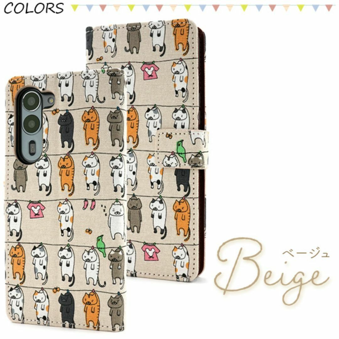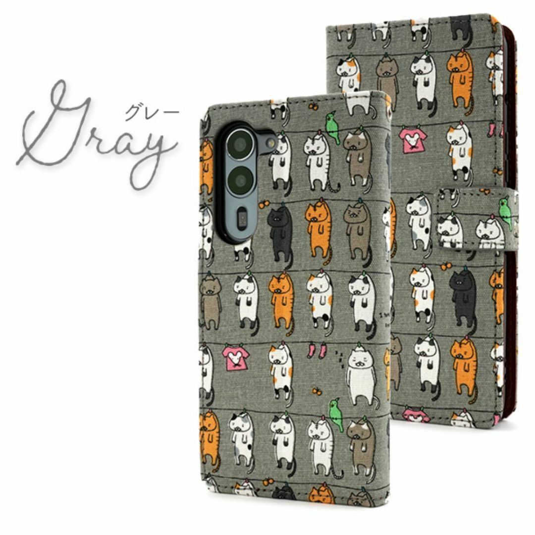 いっぱいの猫達が干されている柄の手帳型ケースです。