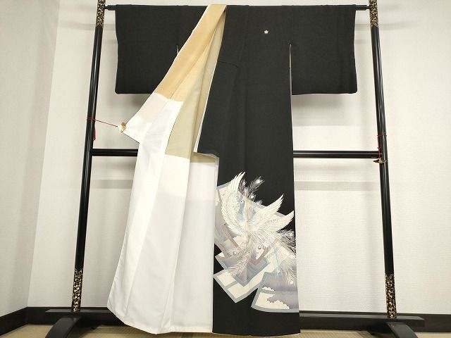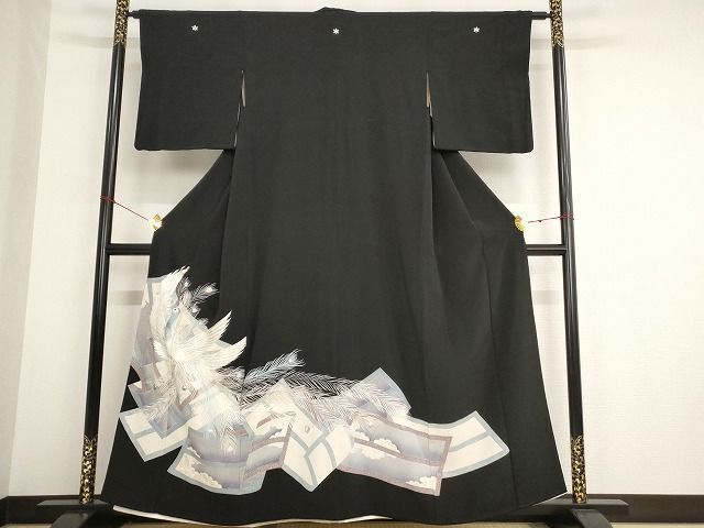 【正絹・五つ紋・比翼仕立て】 状態は接写画像のように後身頃・比翼・胴裏・比翼衿・衿裏に薄いシミがございますが その他特に目立ったシミ汚れなどもなく大変良い状態です。 大変上質な逸品になります。 お安く出品致しますので、是非この機会にいかがでしょうか? |