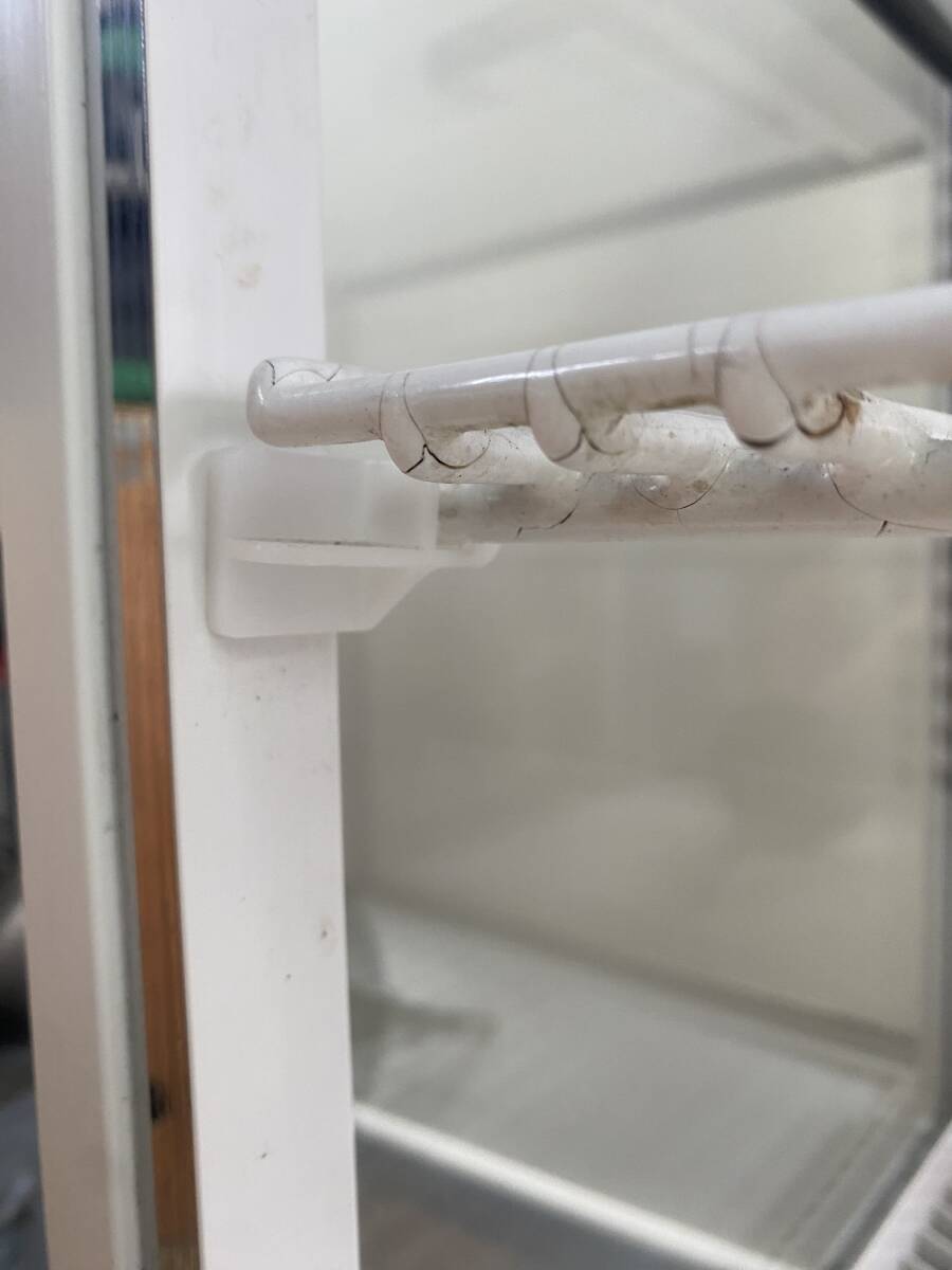 写真10 !棚を支えるピンが2個しかありません!今3点止め状態です。