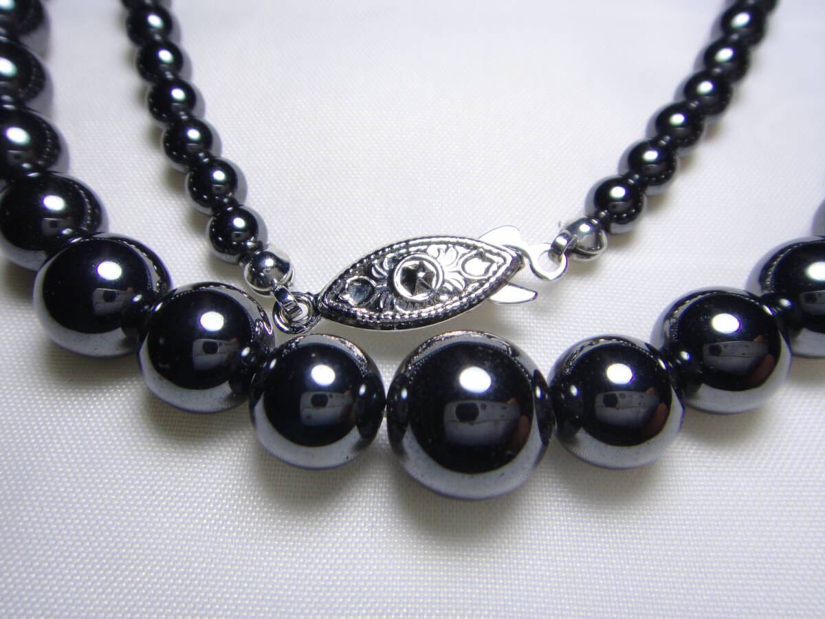 天然石 ヘマタイト ネックレス 最大約10㎜玉 JAPAN刻印 良品 ヴィンテージ C335