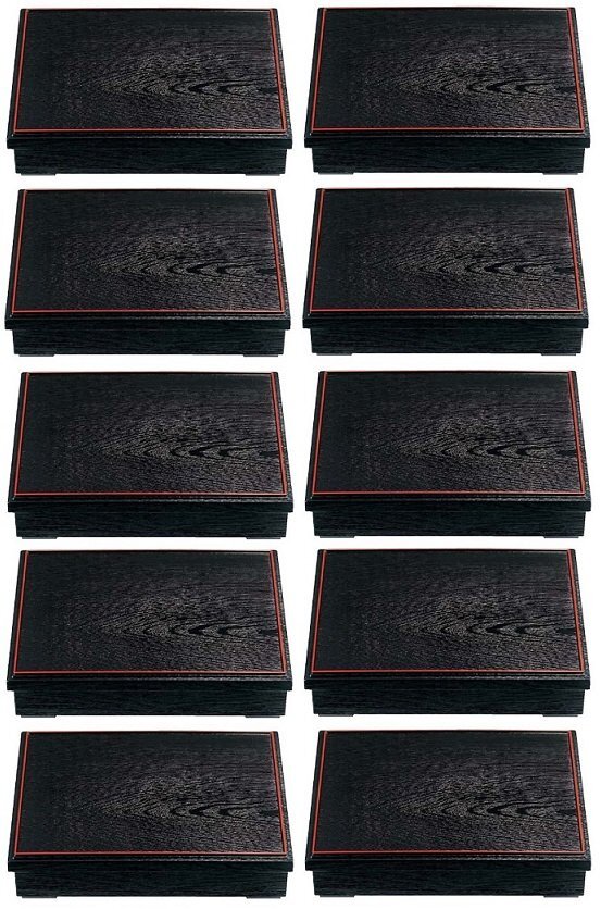 ☆木目松花堂尺1寸約313X260mm黒天朱内黒十字仕切付10個