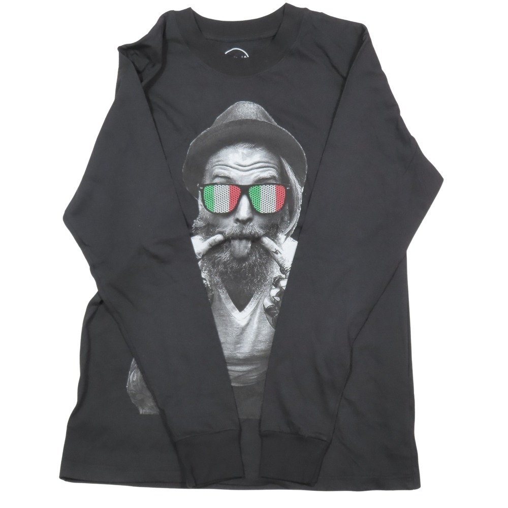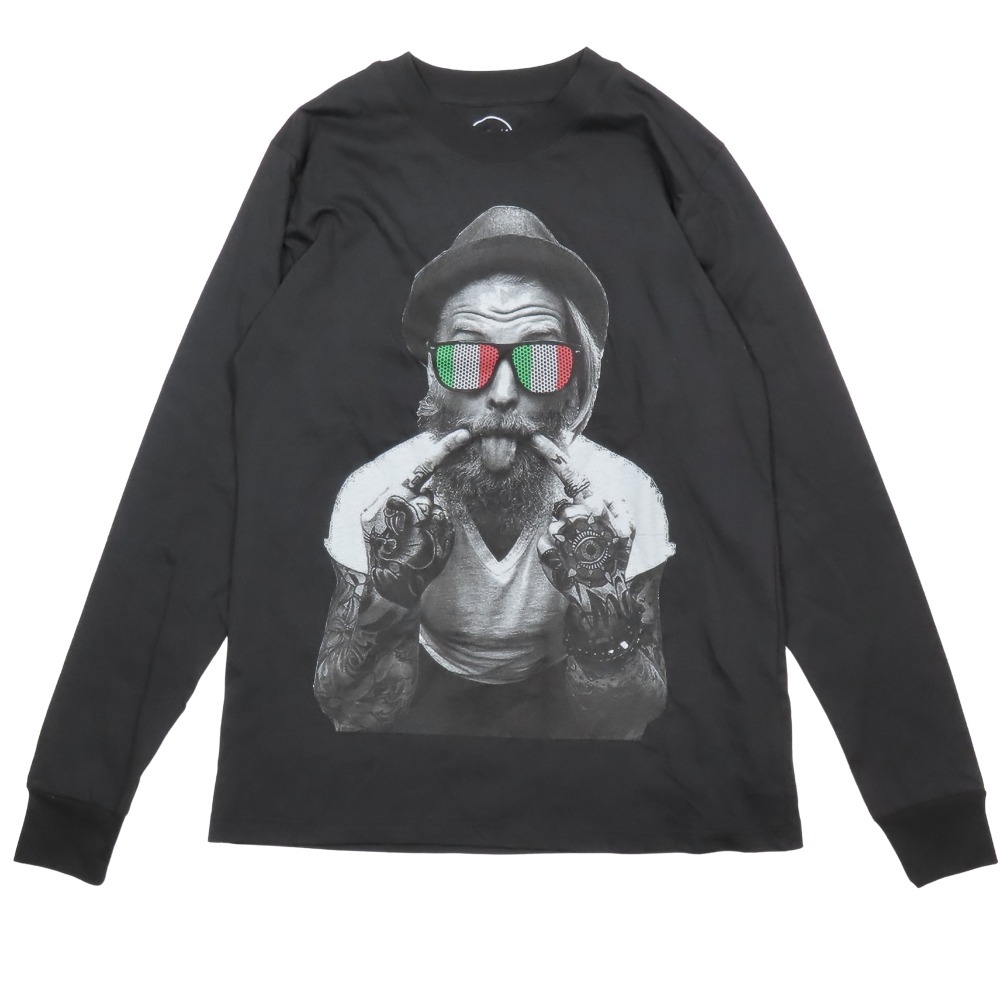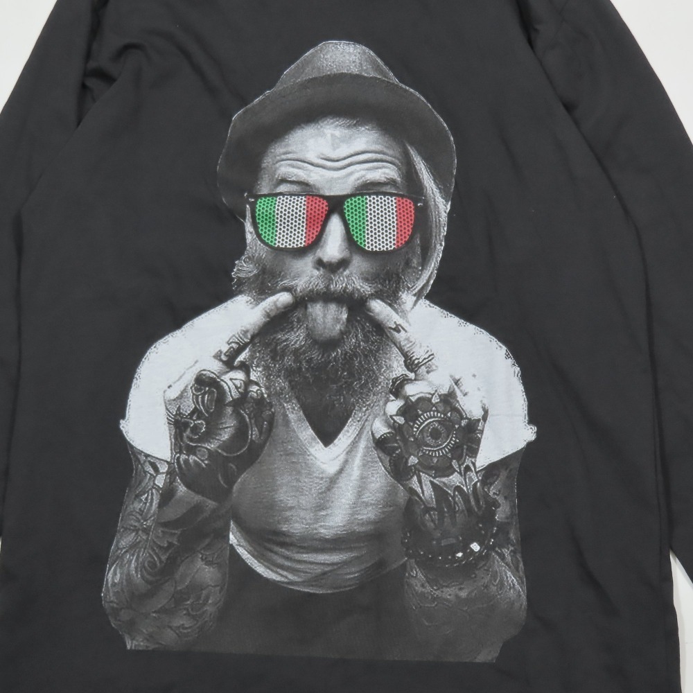 商品名:SPEND スペンド 長袖 Tシャツ カットソー トップス プルオーバー クルーネック プリント メガネ タトゥー イタリア製 L 黒