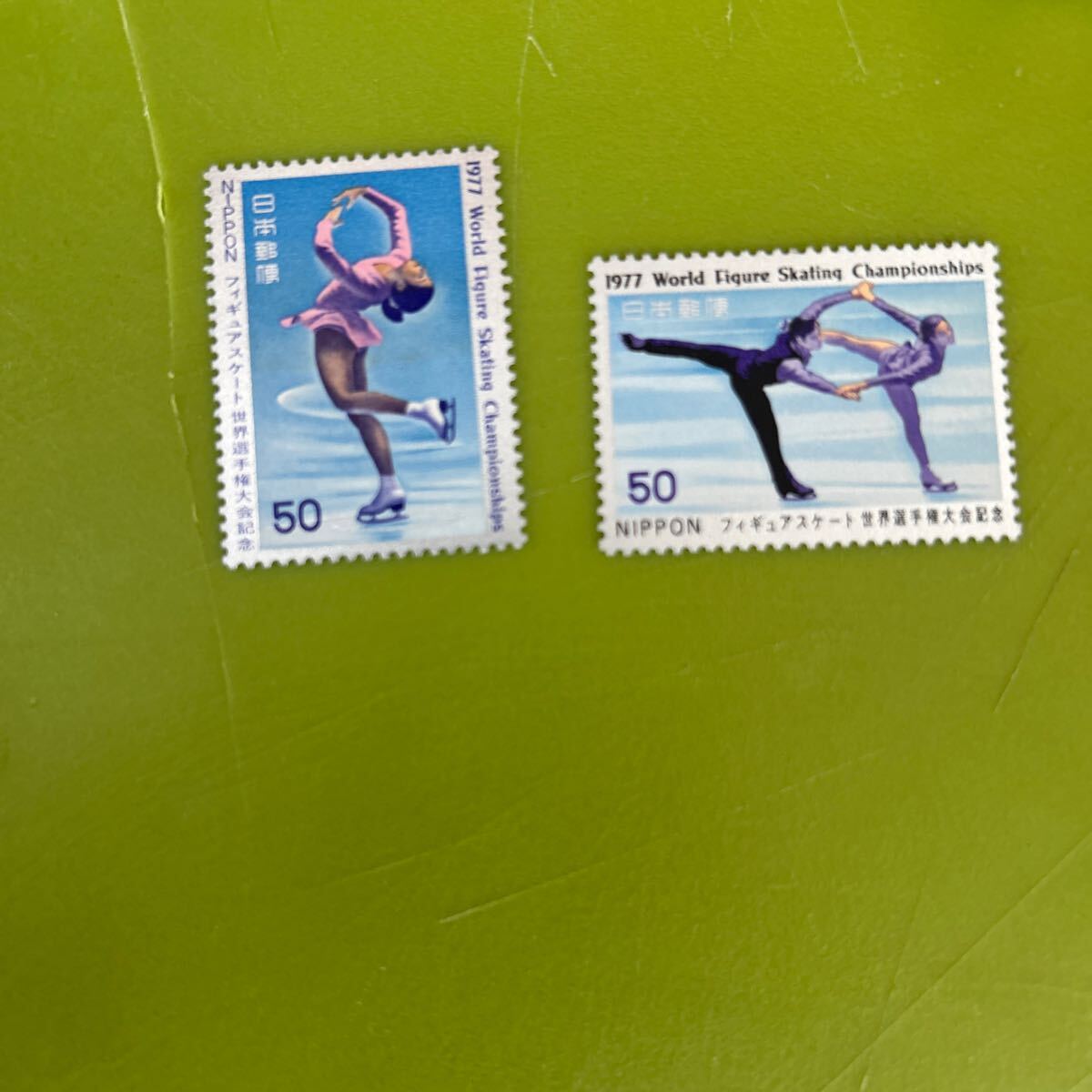未使用の1977年の切手フィギュアスケート2種セットです。未使用ですが自宅保管の為細かなところが気になる方はご遠慮ください。