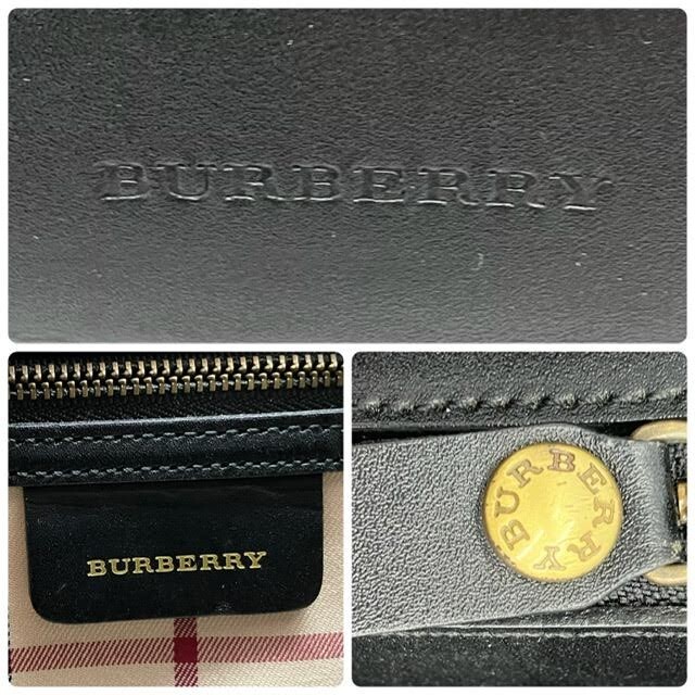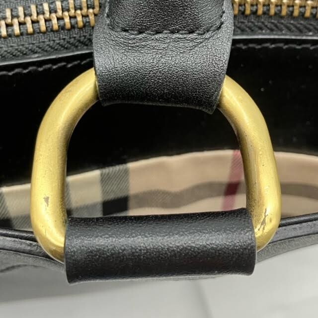 仙35 BURBERRY レザー トートバッグ ハンドバッグ ブラック ゴールド金具 ノバチェック バーバリー ビジネス 通勤 A4収納可