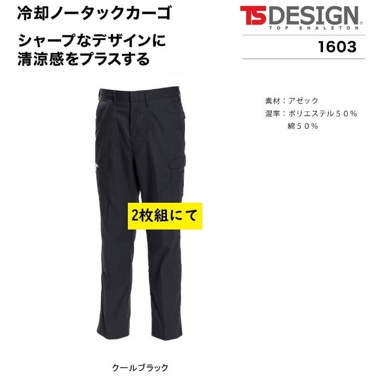 ビックイナバ特価◆TSDESIGN 1603[春夏]冷却ノータックカーゴ【95クールブラック・W88cm】1枚8140円・通気性抜群の品、2枚即決2980円