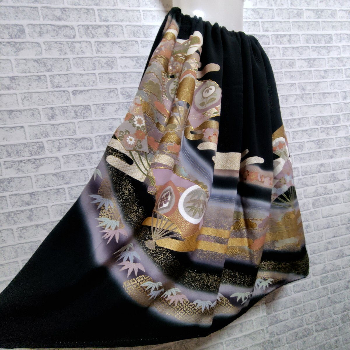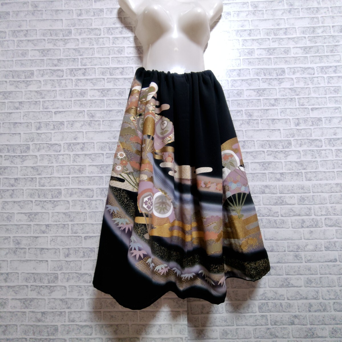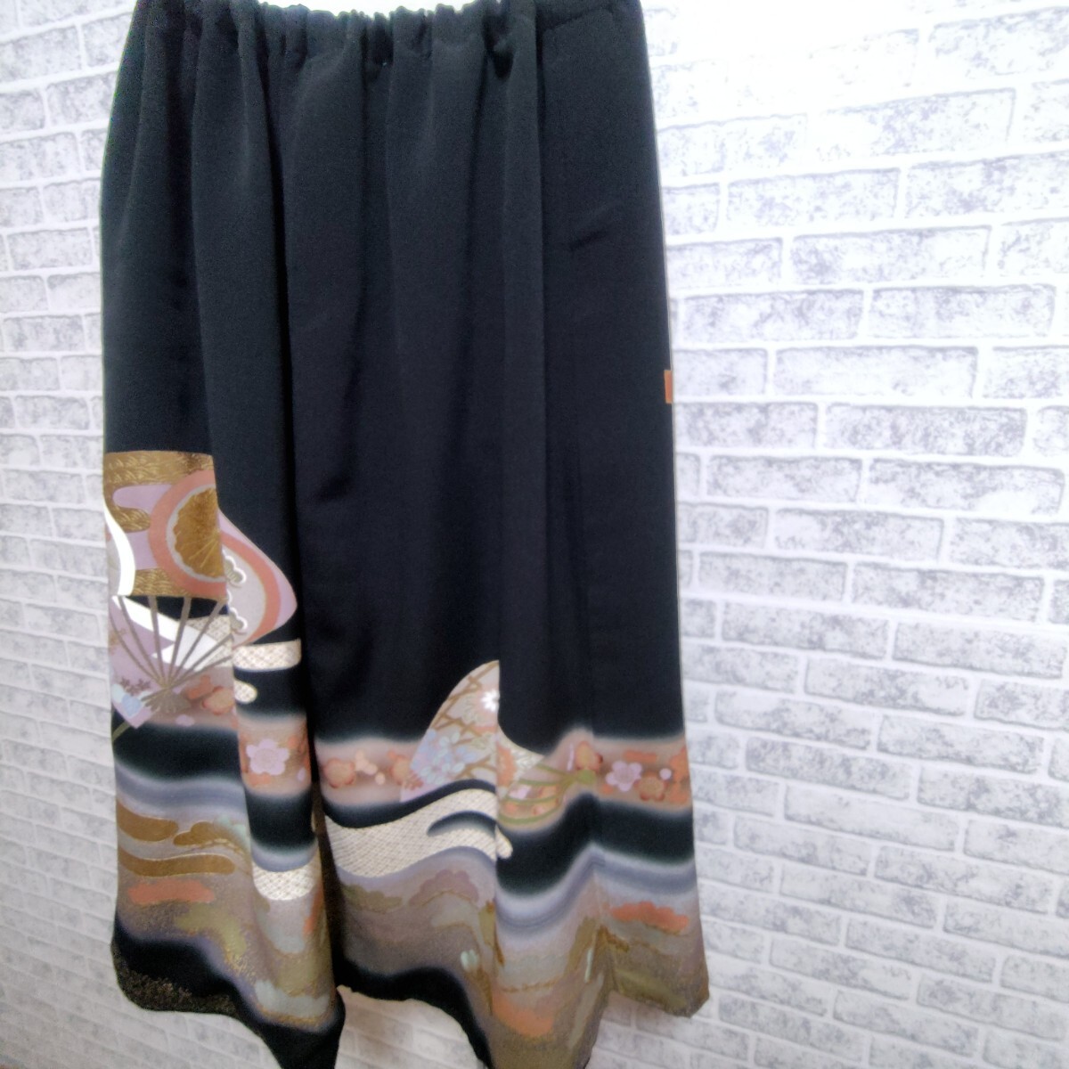 素敵な黒留袖をゴムのスカートにリメイク致しました。